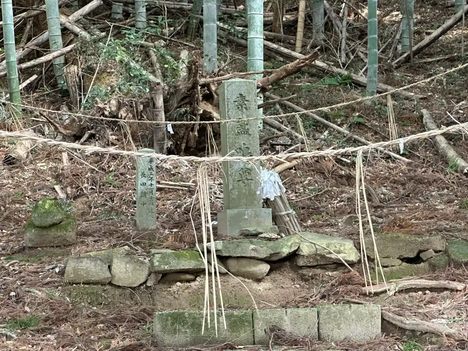 注連縄の張られた奥のお塚には素戔嗚尊と刻まれています。