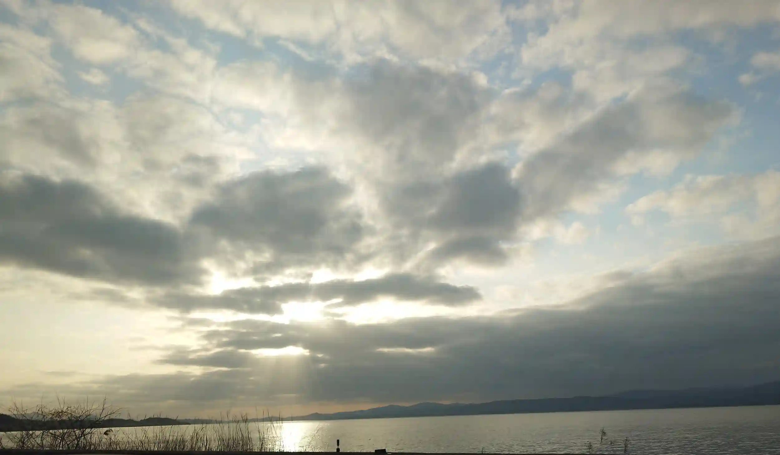雲の間から日が差しています。