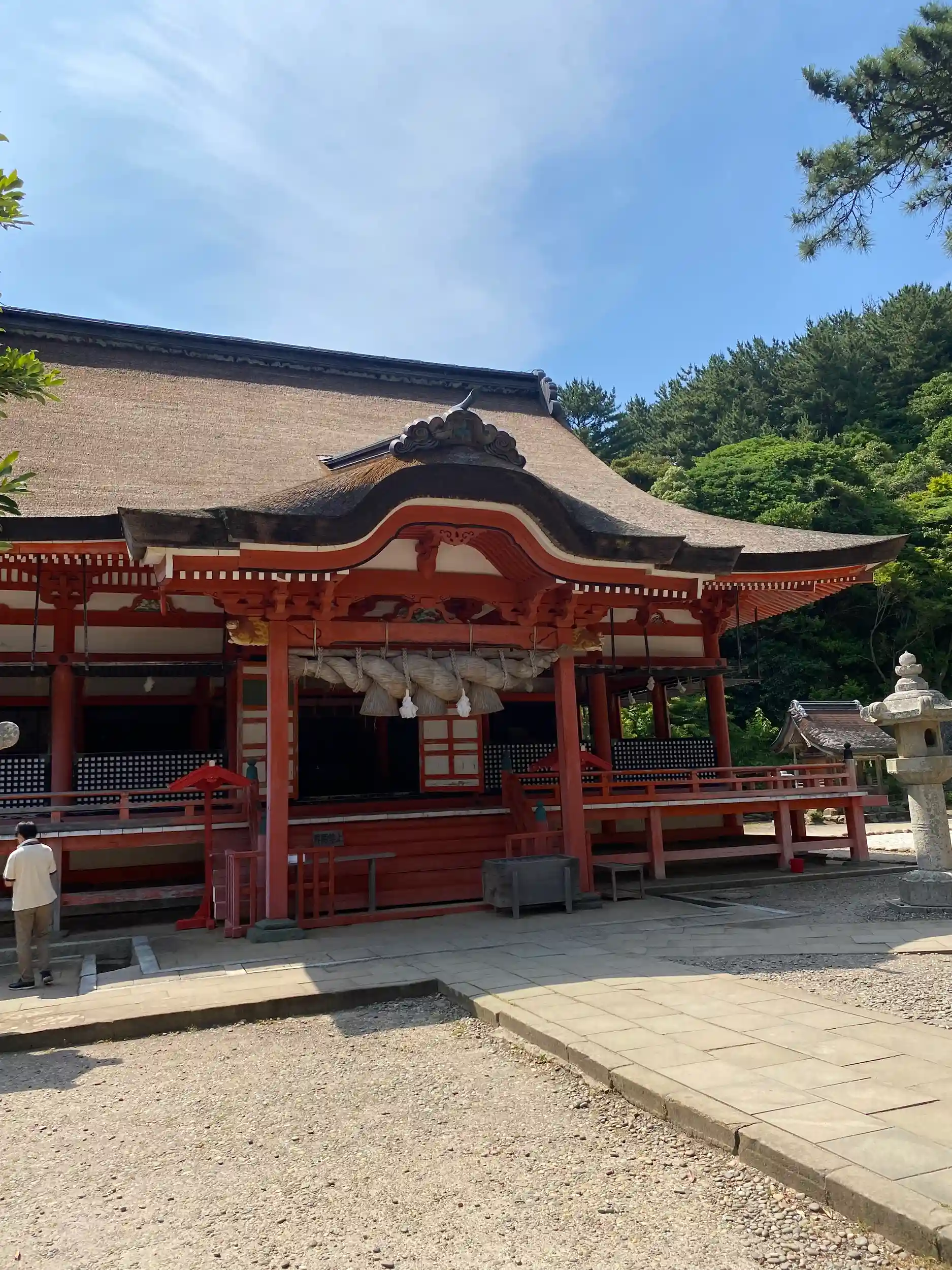 海沿いにある荘厳華麗な神社で、少し竜宮城的なイメージを持ちましたが、夜を守る神社とのこと。