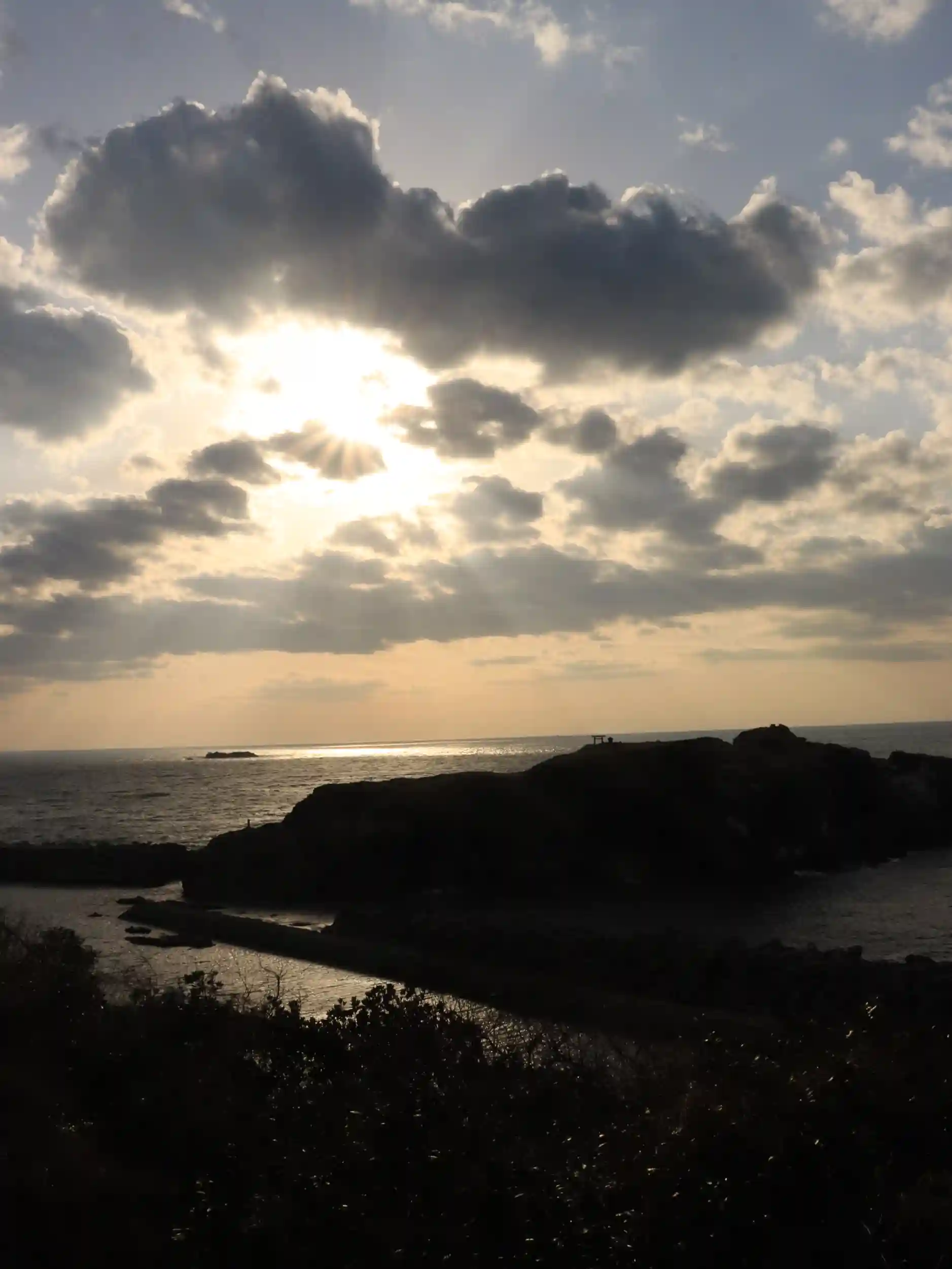 起床してすぐ投稿を拝見させて頂きました。神社もさることながら日御碕の海岸風景、夕日が沈むまでの写真は良いですね。人が大勢いますので最高の夕日と夕焼けスポットなのでしょうね(^^)