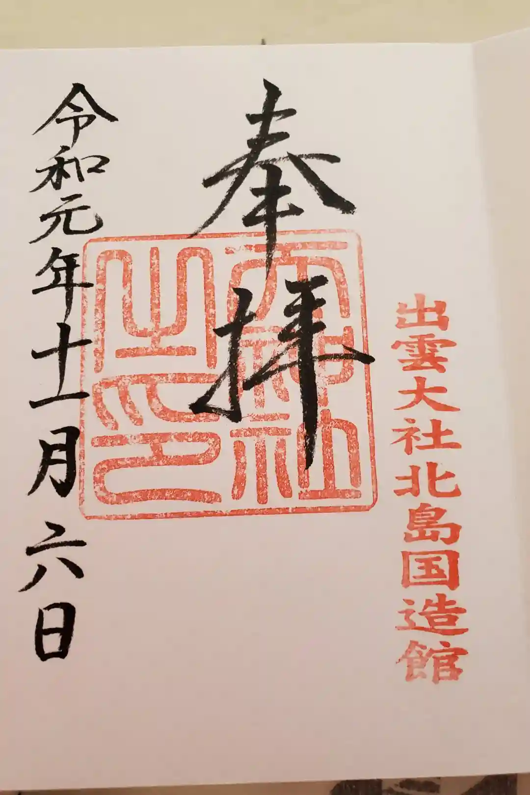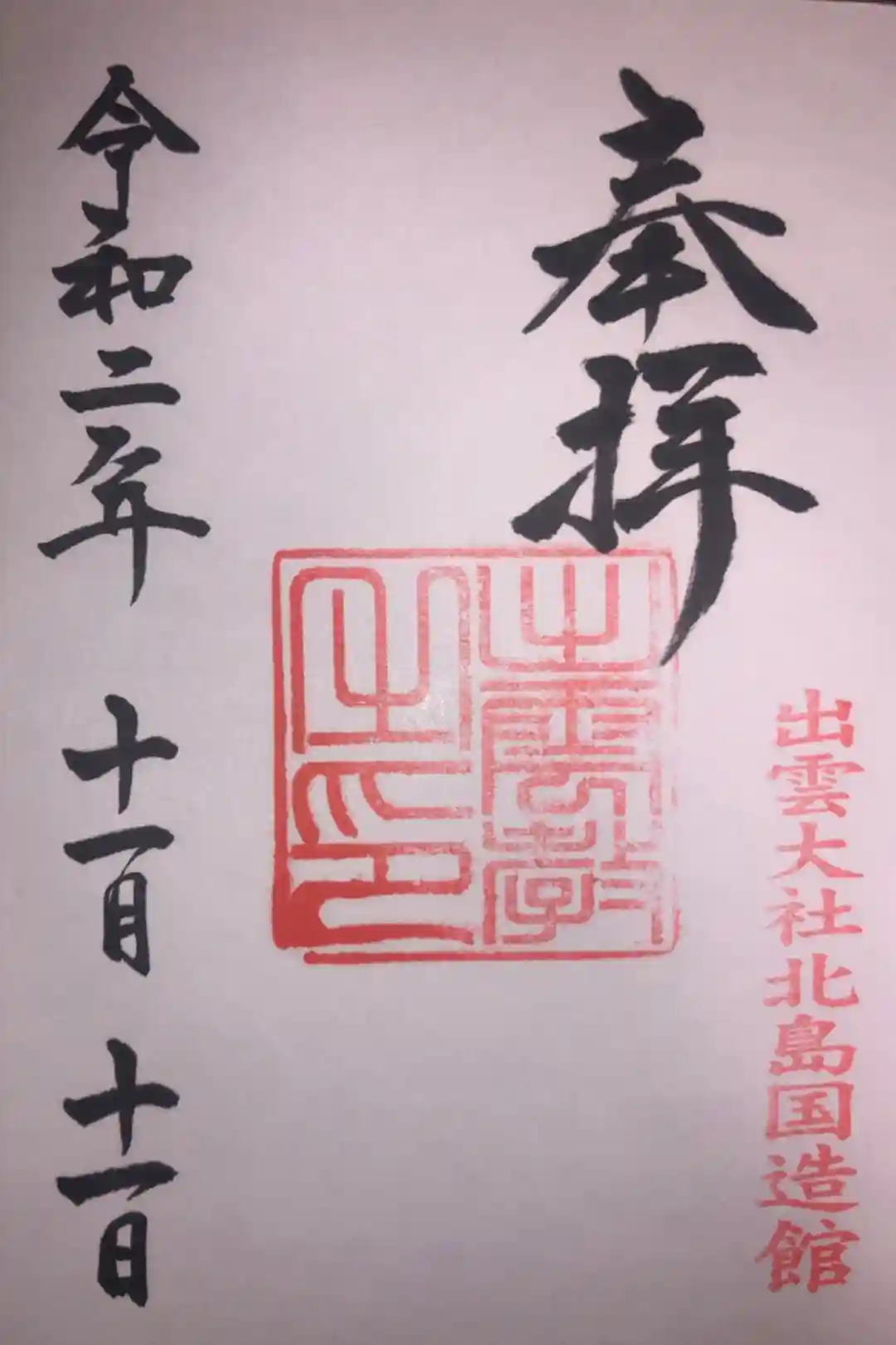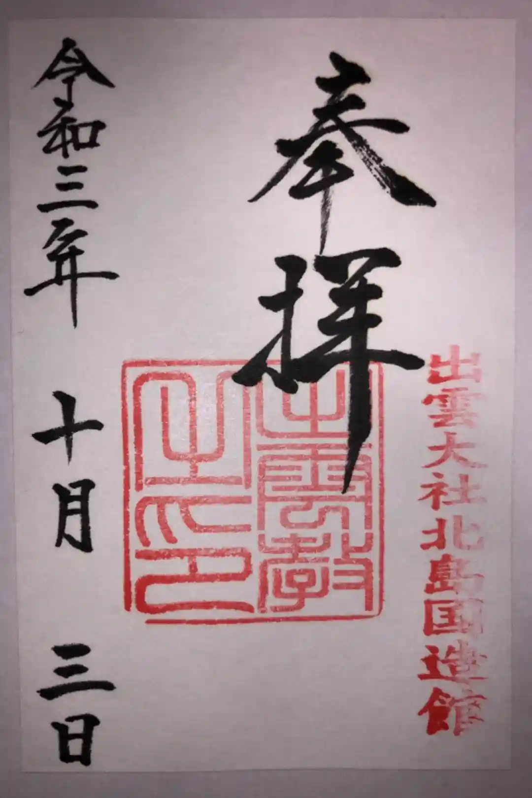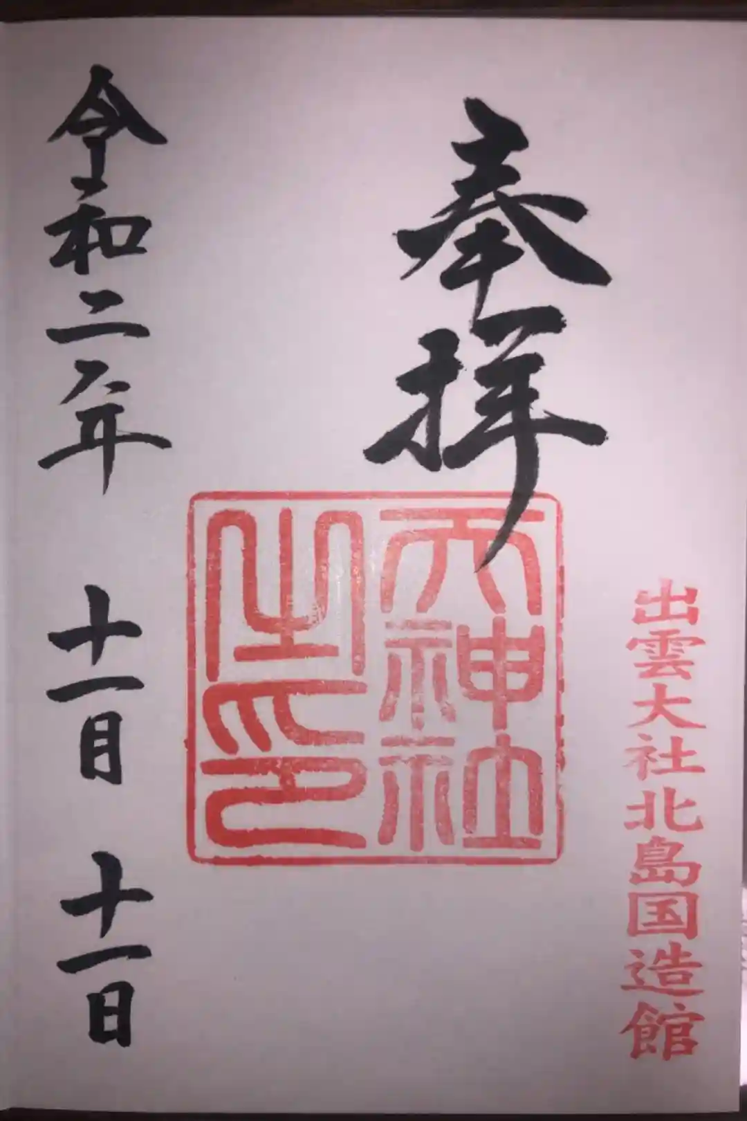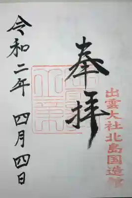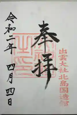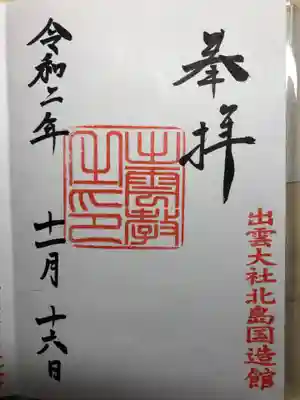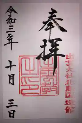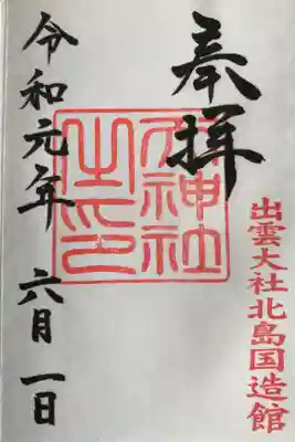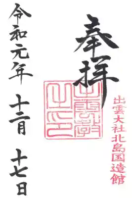 出雲大社北島国造館の御朱印です。