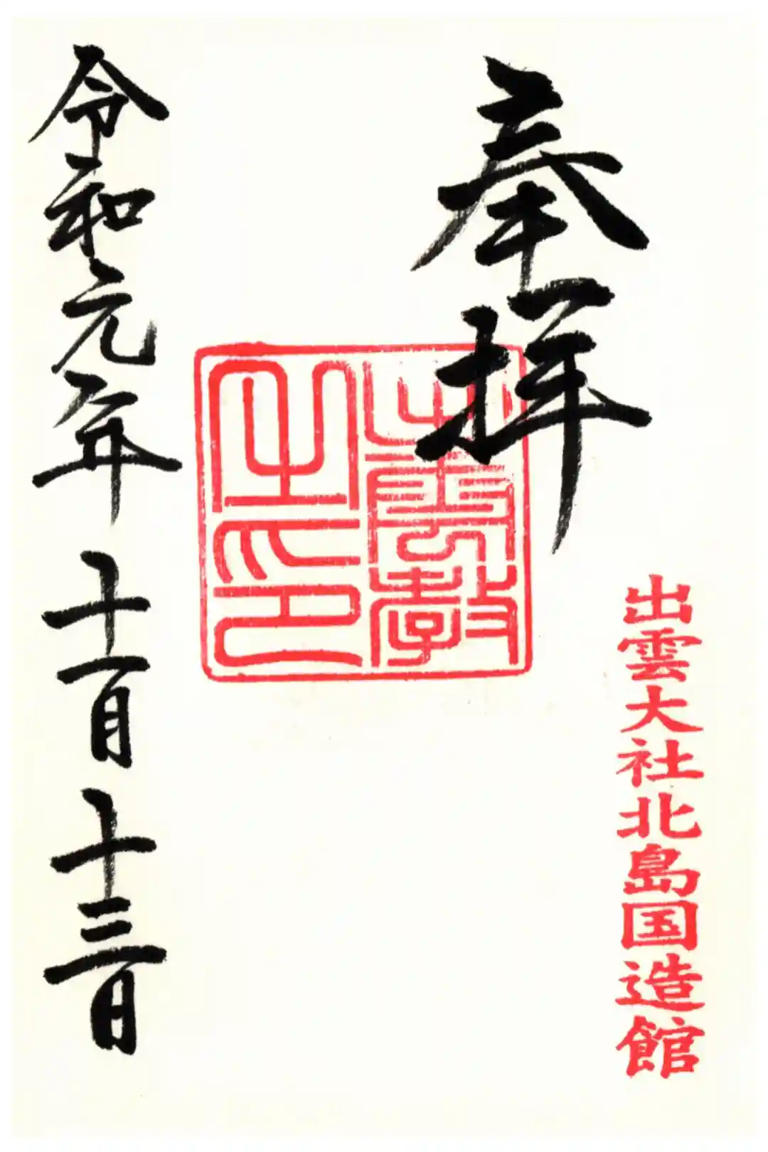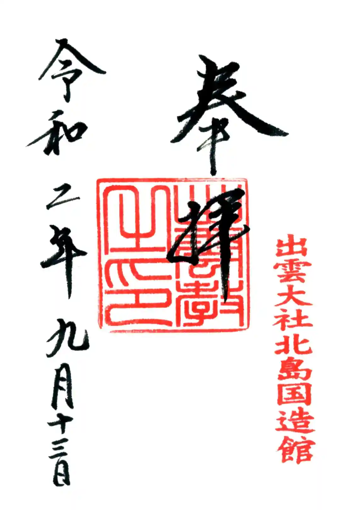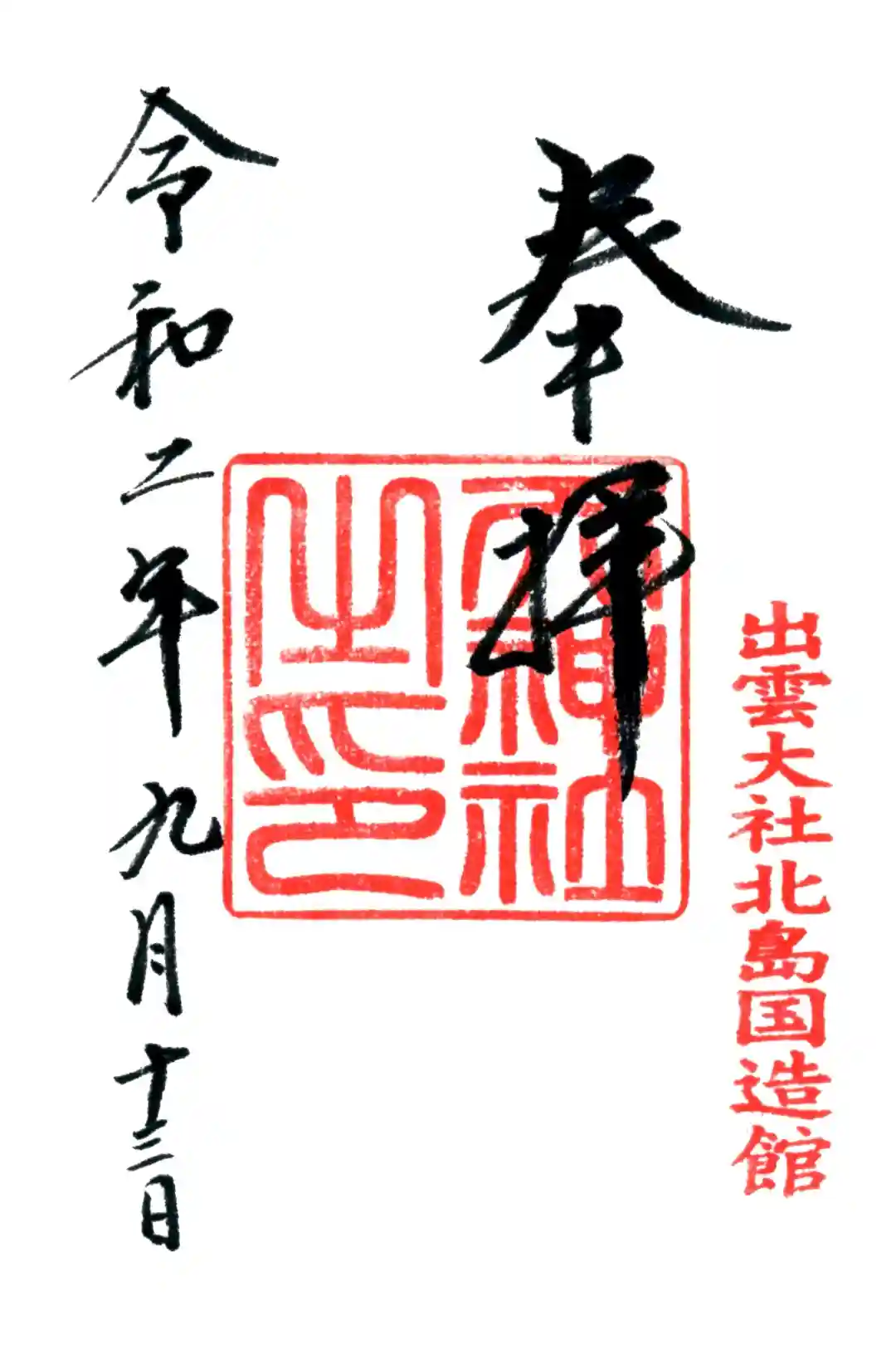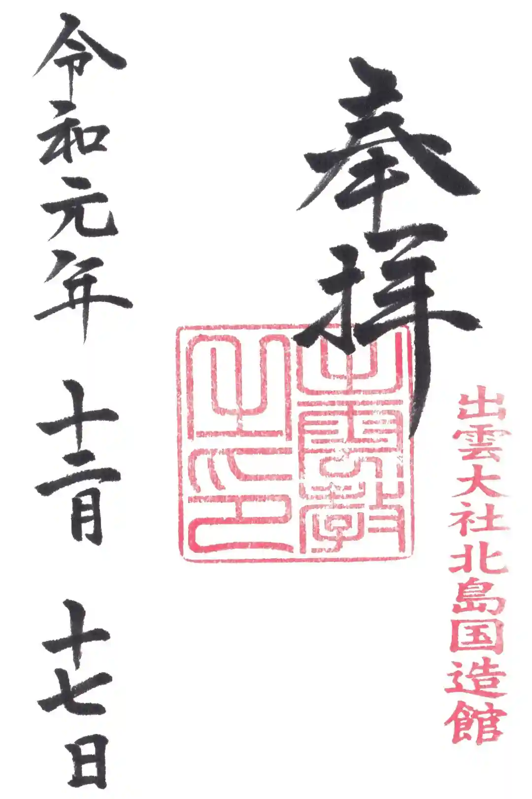 出雲大社北島国造館の御朱印です。