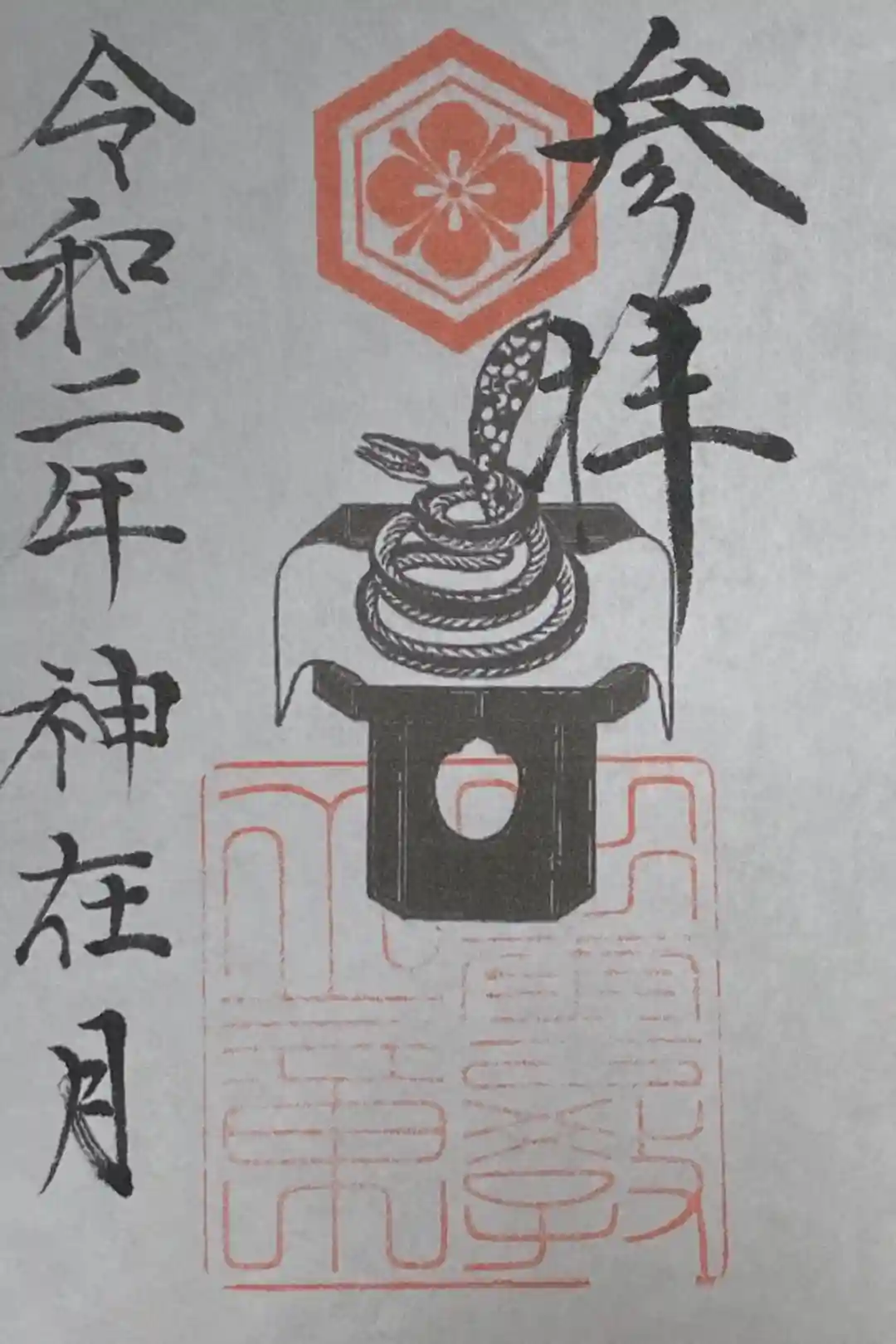 神在月(旧暦十月)限定御朱印。この時期だけ出雲に参られる龍蛇神をデザインした御朱印。