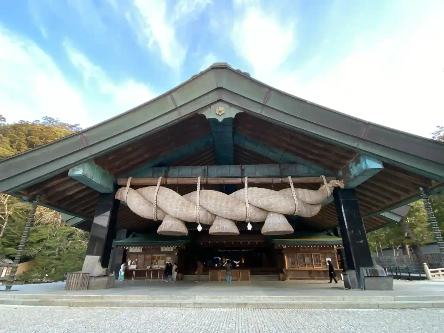 です。なんといっても訪れる人々をまず圧倒するのが、正面に掲げられた日本最大級の「大注連縄」ですよね。その大きさはまさに桁違いで、神々しい迫力に満ちていました。