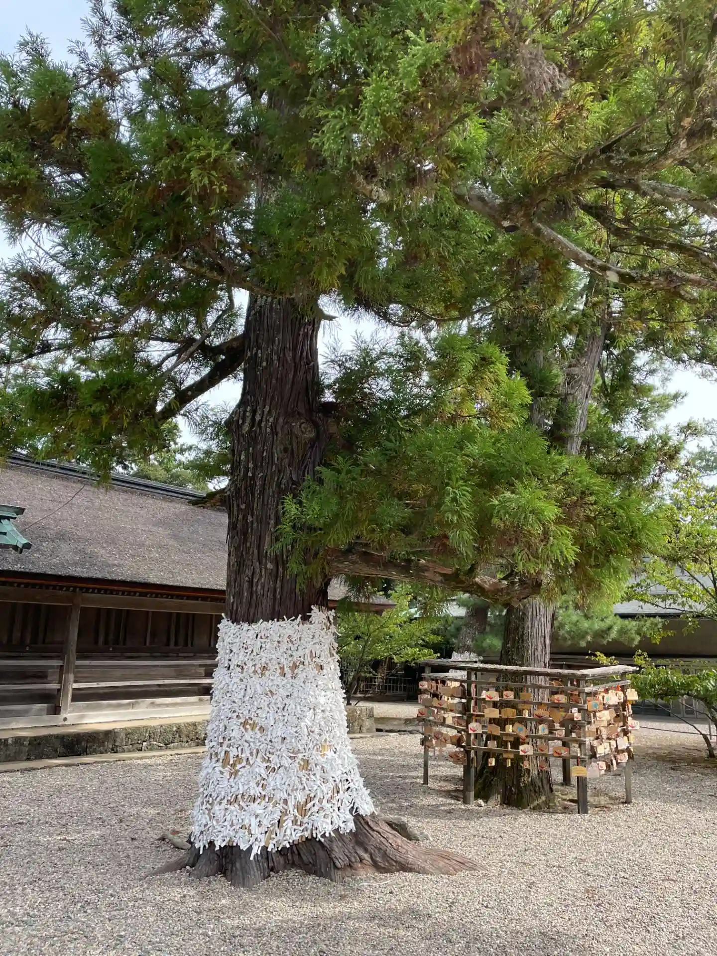 本殿裏手には素鵞社があるのですが 稲佐の砂が置かれています。こちらに奉納して1年後に取りに来るのだそうです。ただ 1年後にお参りできない方もおられますので 稲佐の砂を取ってきてこちらに奉納して 代わりに砂をいただいて帰るのだそうです。