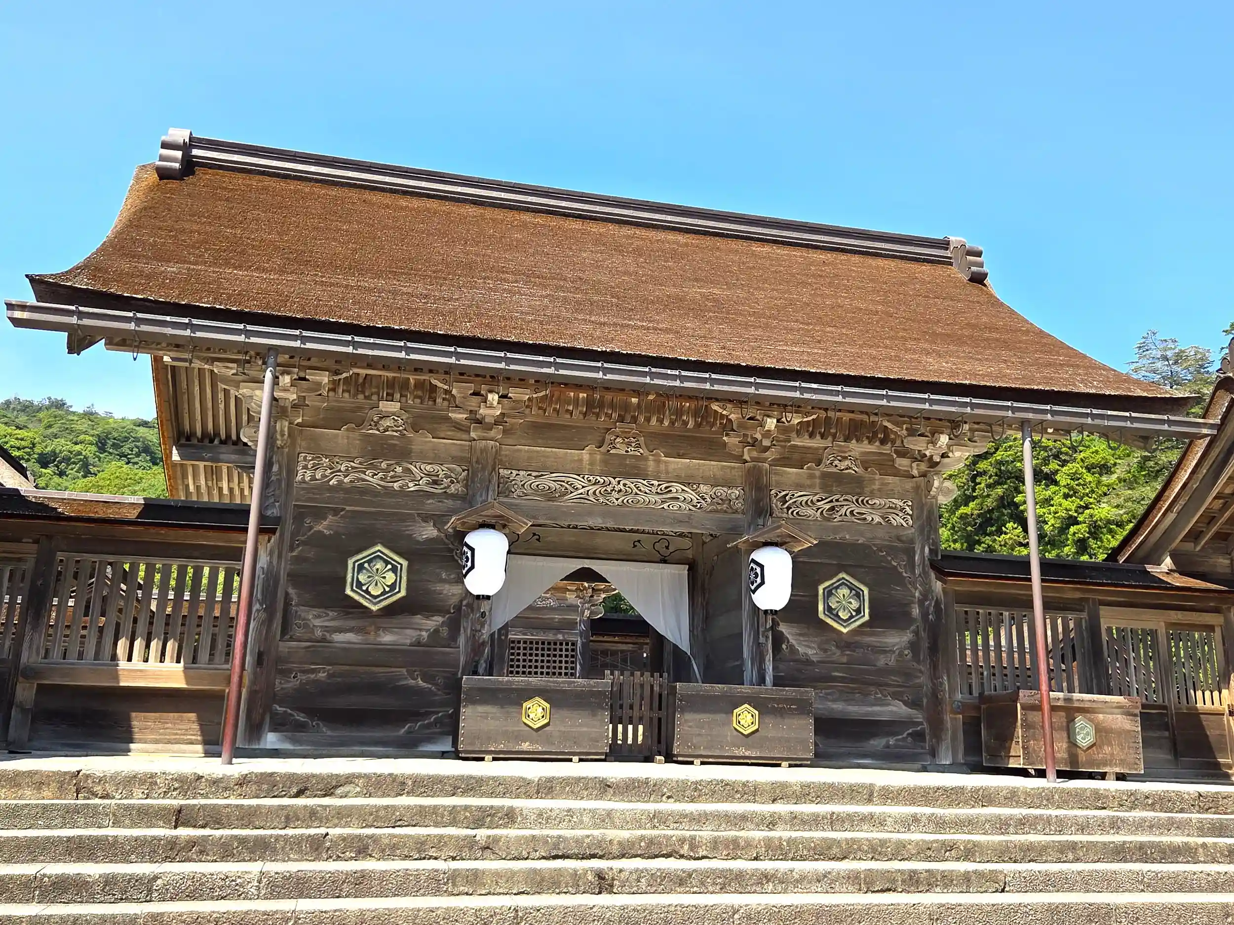 本殿のまわりを西側からぐるっと回り込むと御神座正面の参拝所があり、そちらでも二拝四拍手一拝して、感謝の気持ちをお伝えさせていただきました。