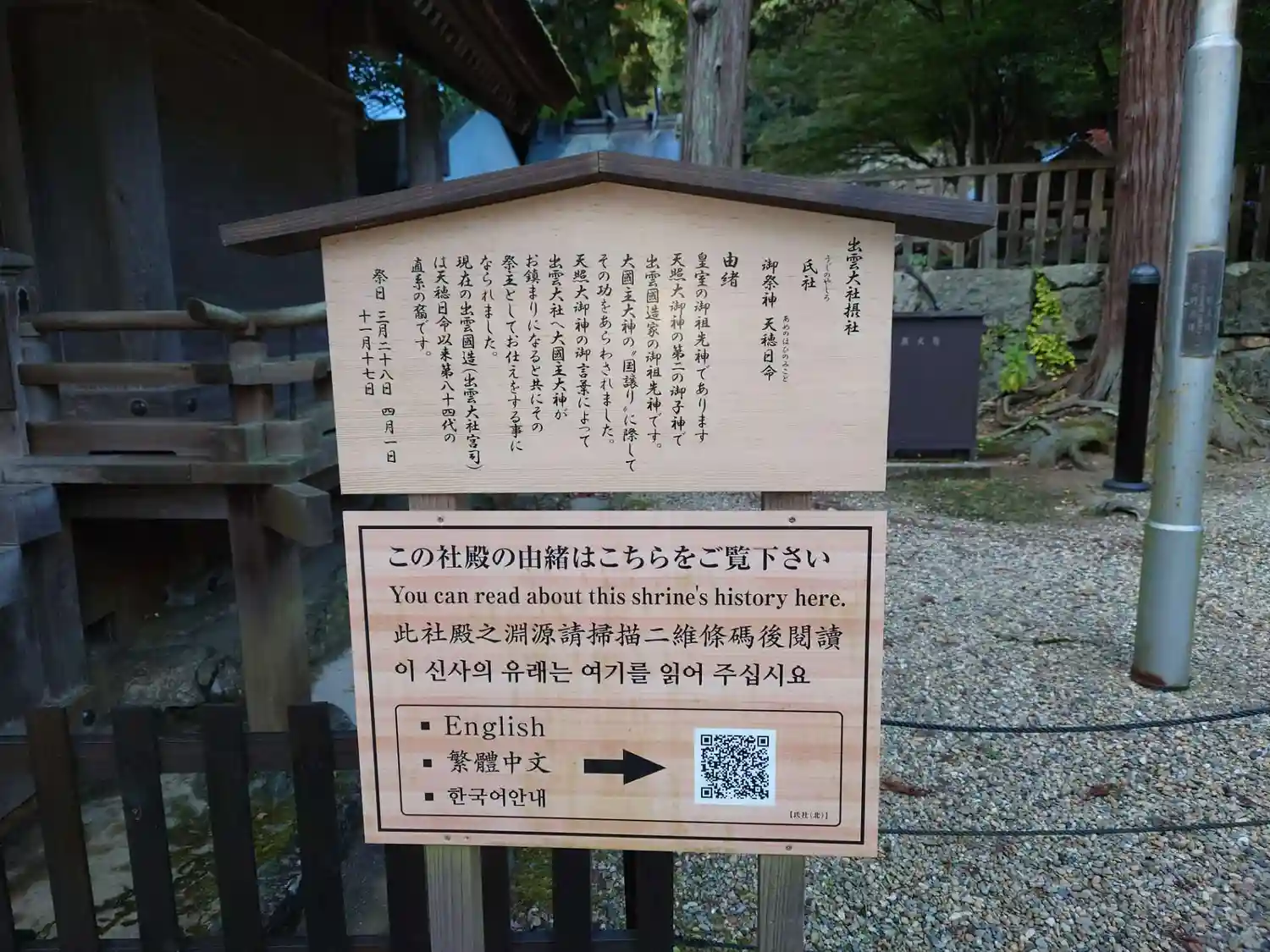 東側の瑞垣に立てられた案内板です。内側にある摂社の説明のようです。