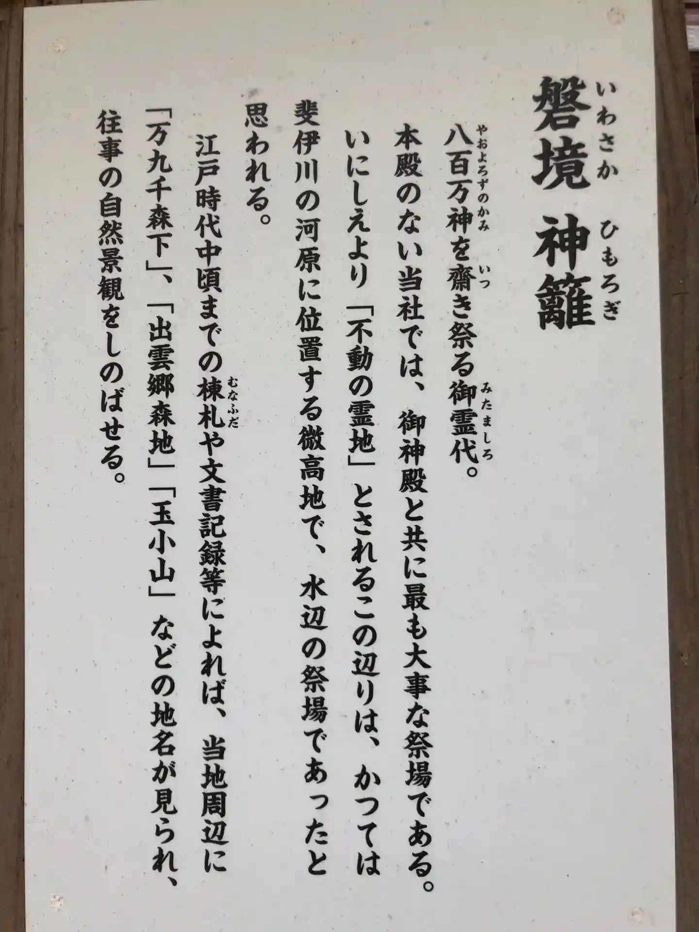 近年の土地開発などで、神社境内地や周辺の景色がこれ以上変貌しないようにとの事が書かれてました。
