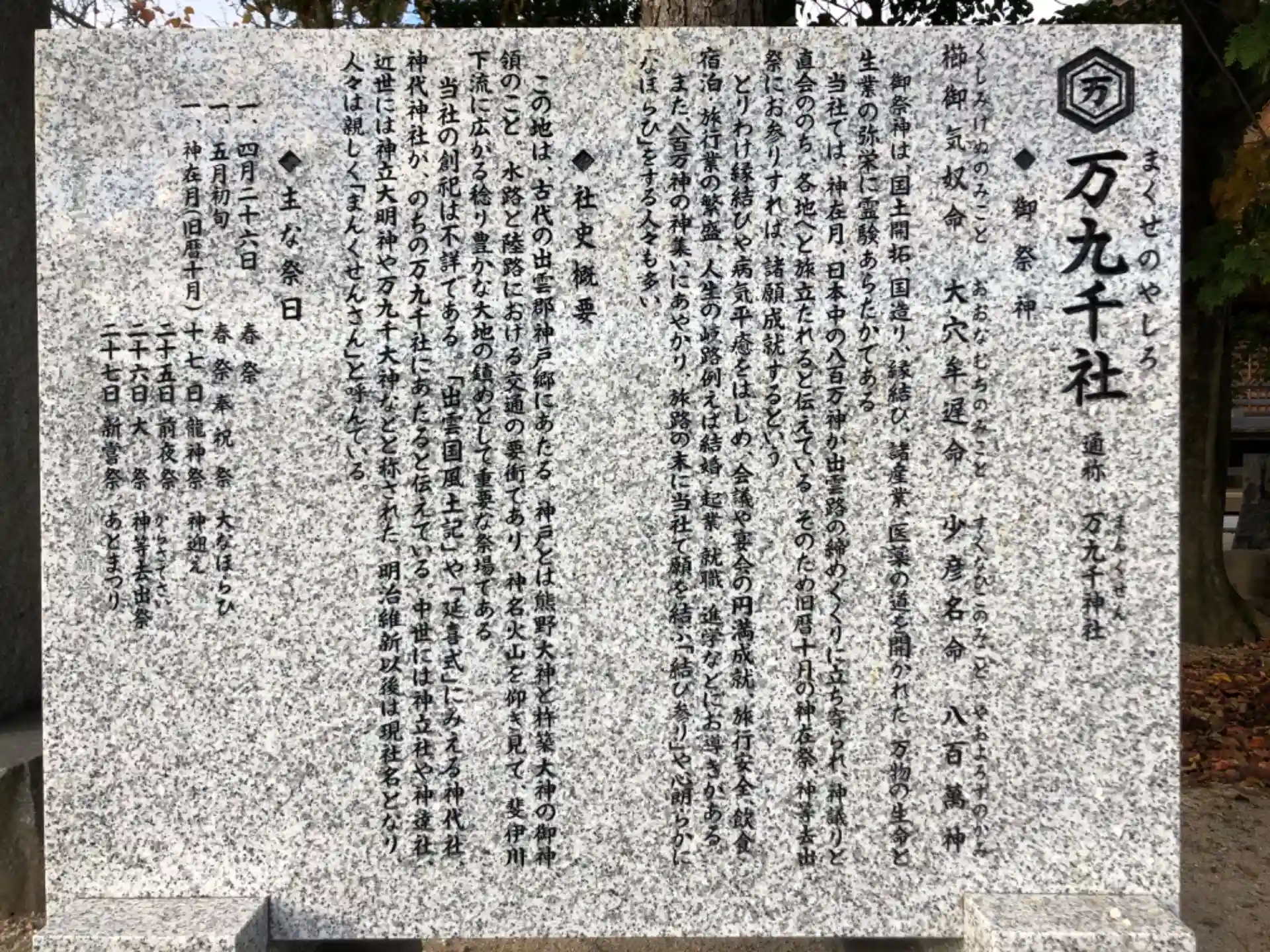 万九千神社の由緒書きです。