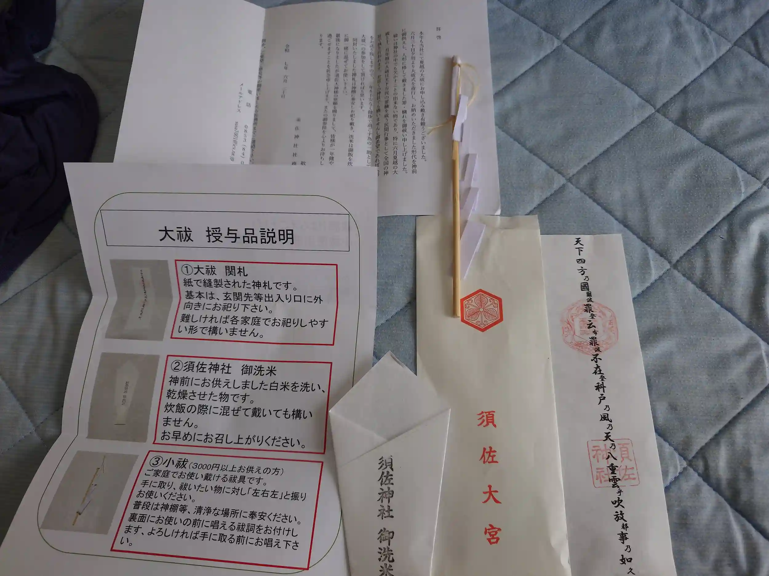 大祓式を郵送にてご対応いただきましたので、感謝の投稿になります。