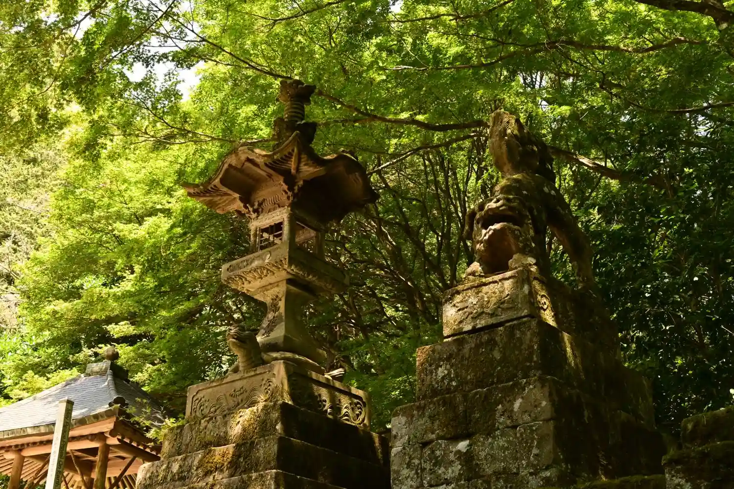 【狛犬・亀の石灯籠 阿形】