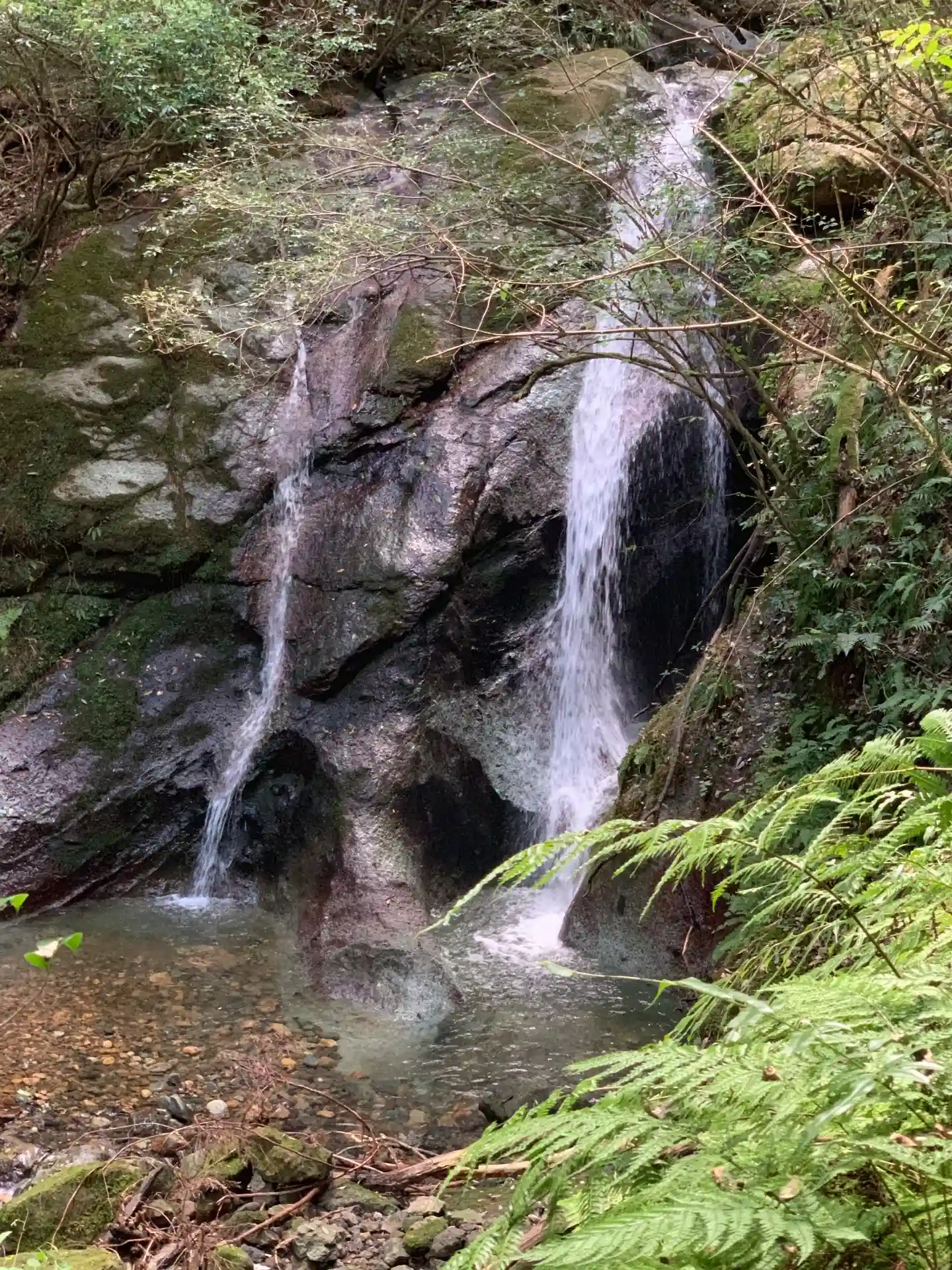 鳥居をくぐり急で苔むした石段を登ると幅50センチなさそうな岩の裂け目が!そこをくぐると社殿があります。運動不足の方、メタボの方は要注意の神社ですね。