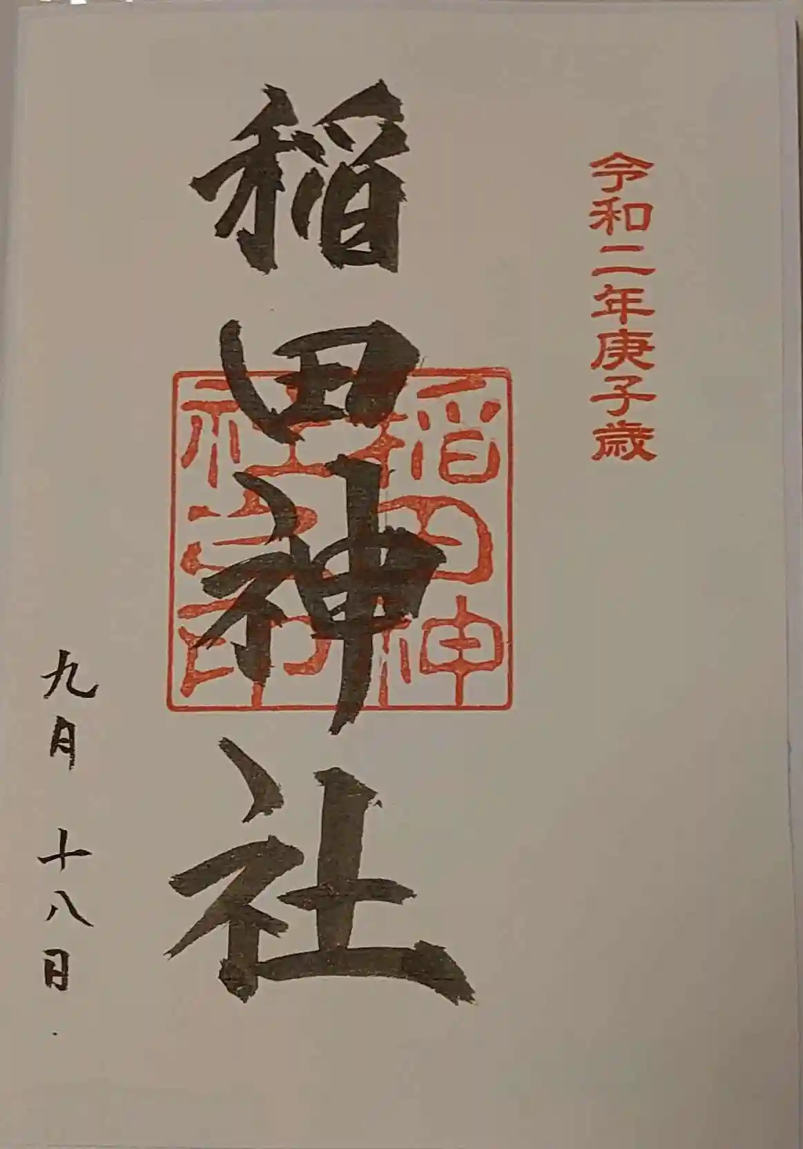 稲田神社の御朱印。書き置きになります。