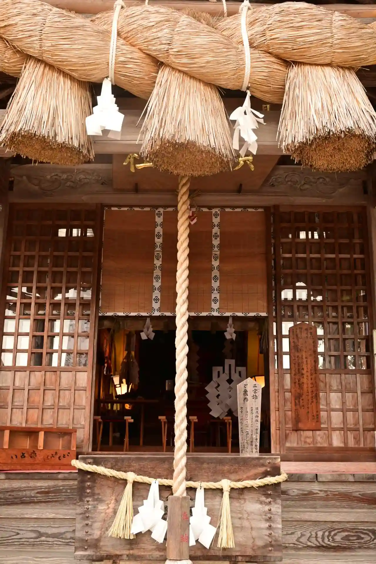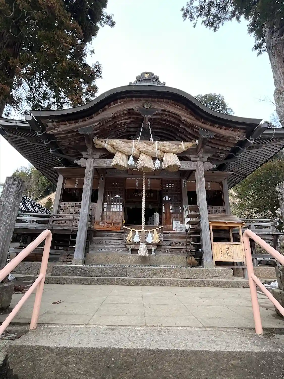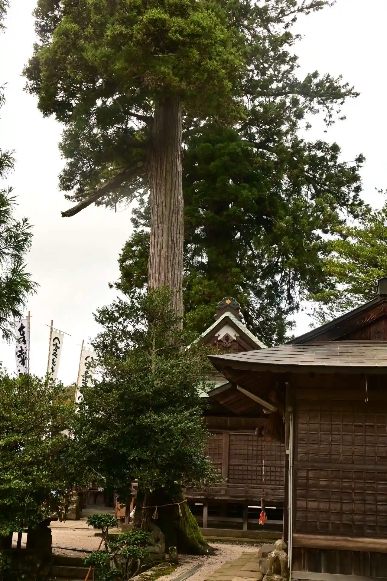 神社社殿✨両側には高さ10mの二本の杉のご神木が建ちます✨