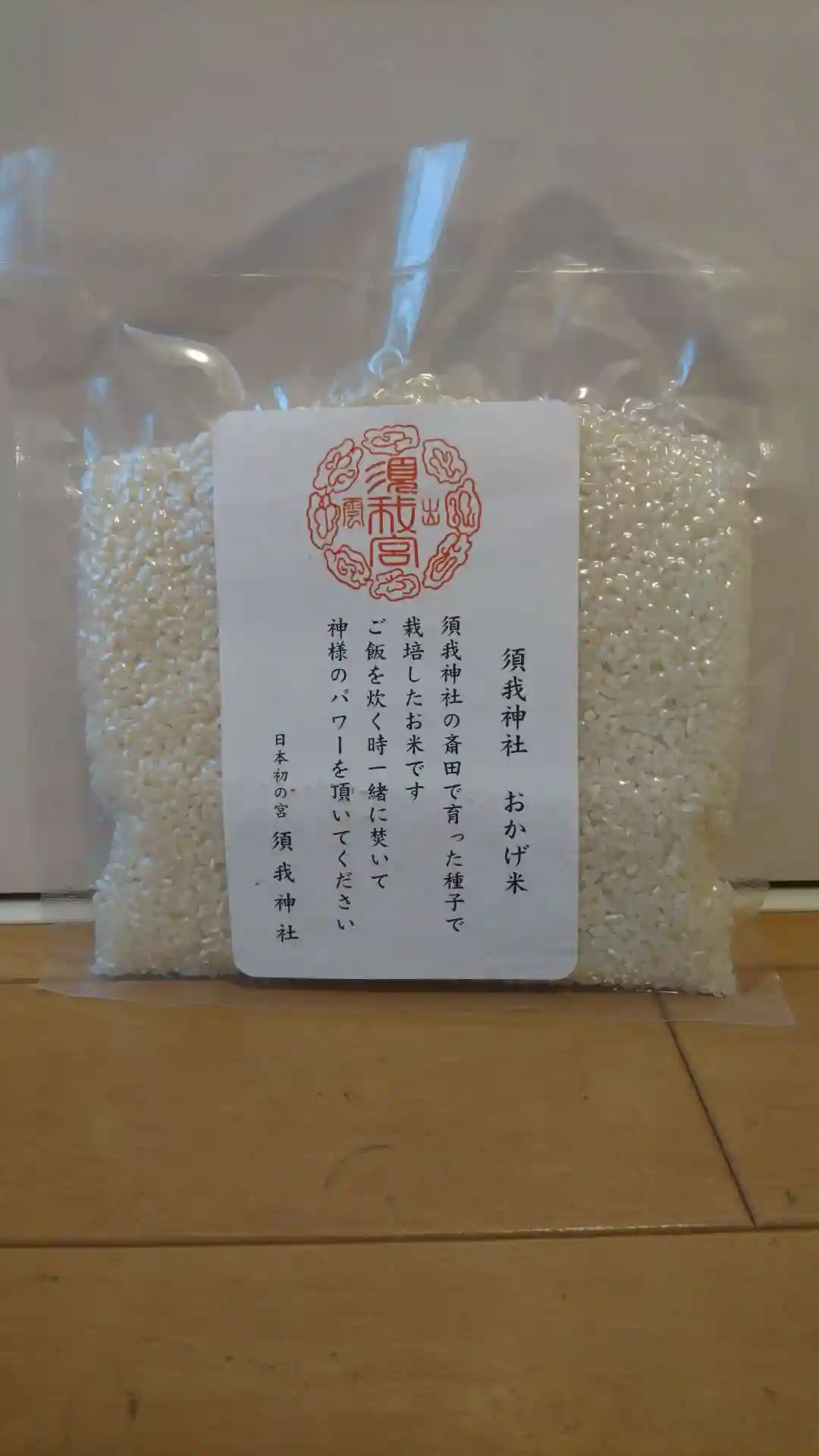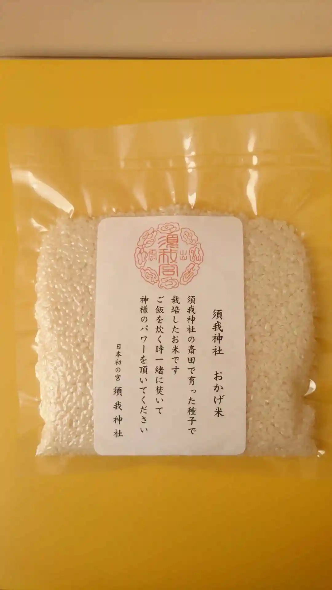 授与所では須我神社齋田で収穫された「おかげ米」が!もちろん授かり、早速炊いていただきました。美味しい上にご利益十分!