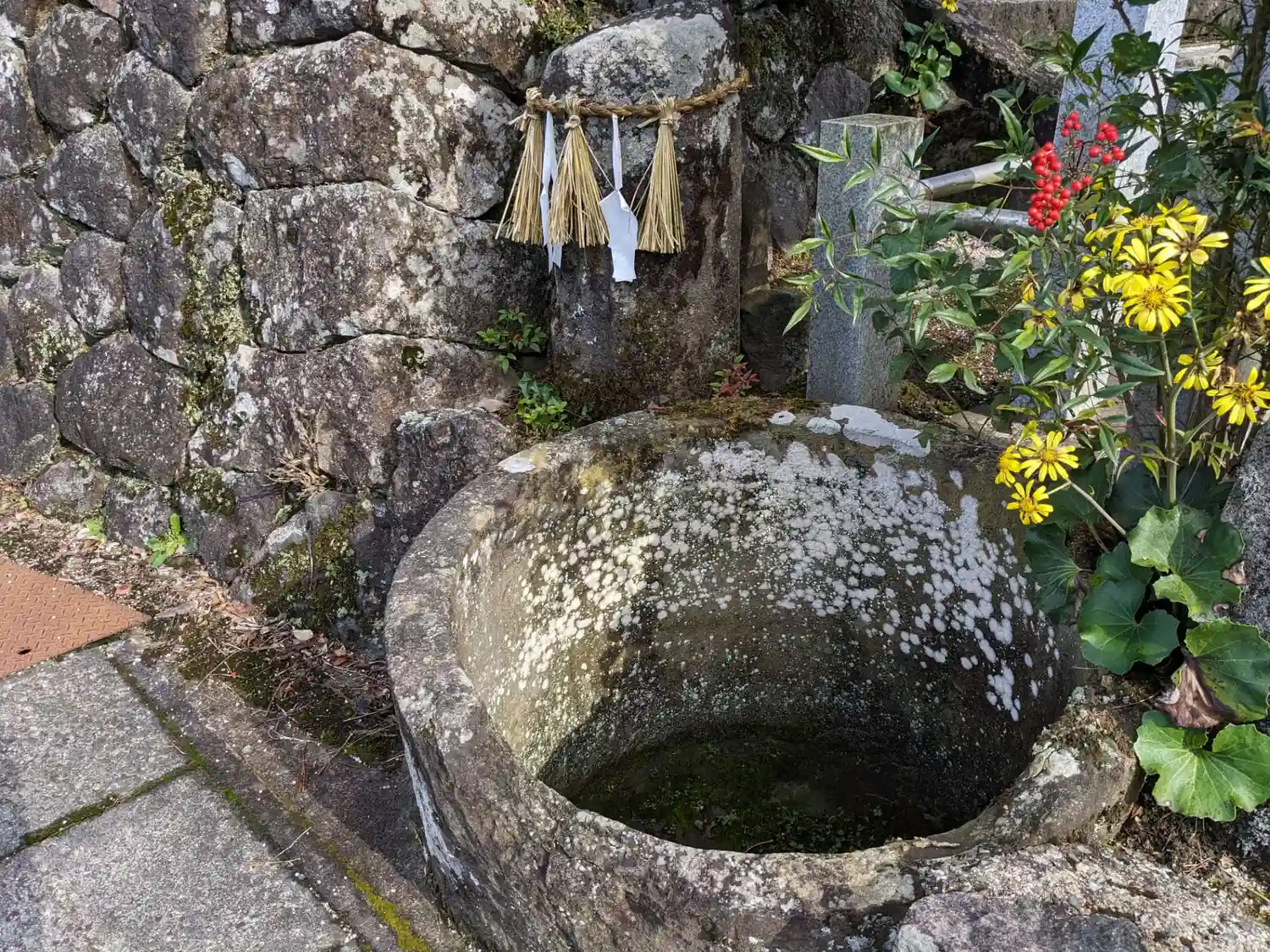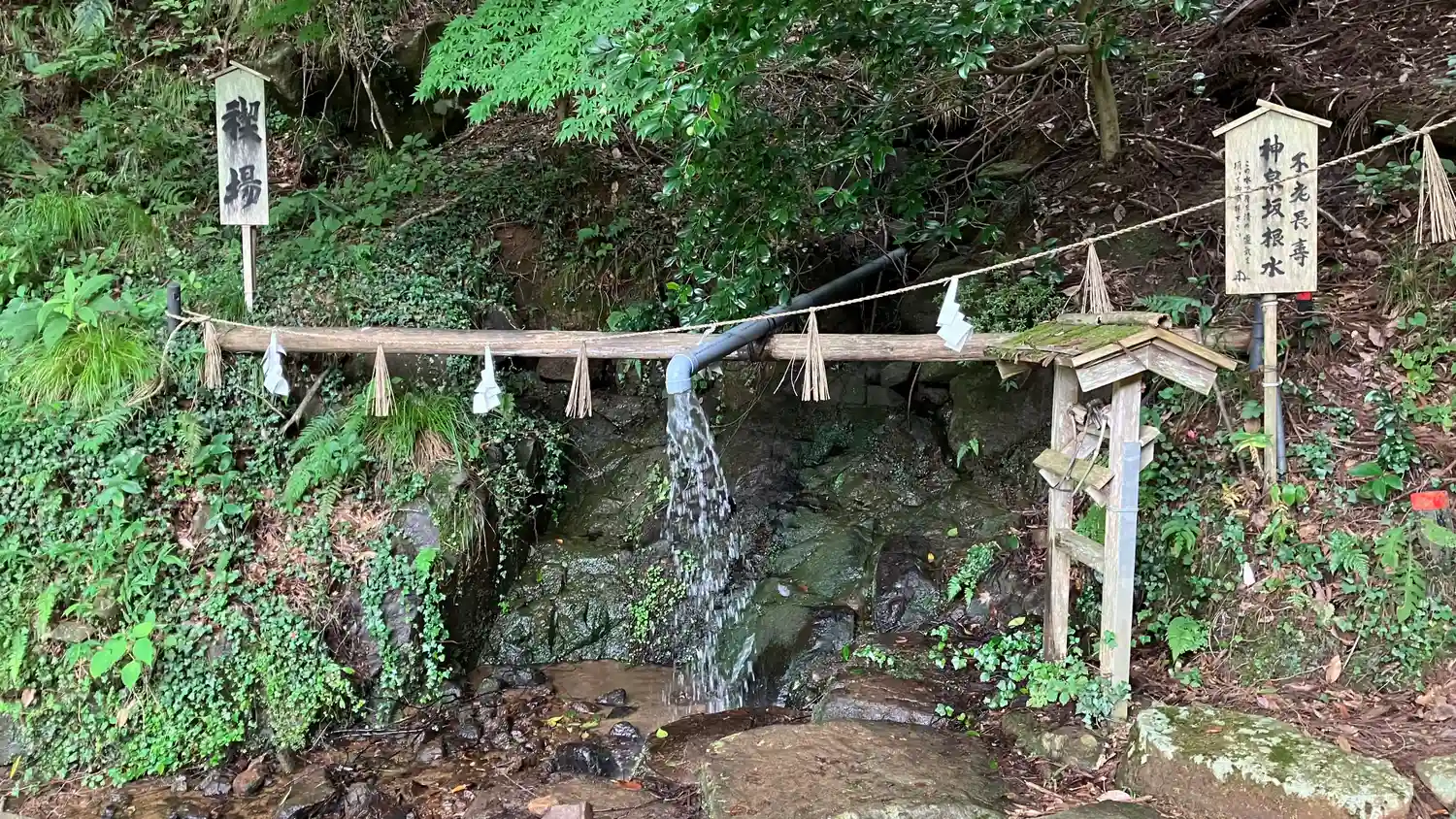 夫婦岩までの道中にある湧水で身を清めて参拝する
