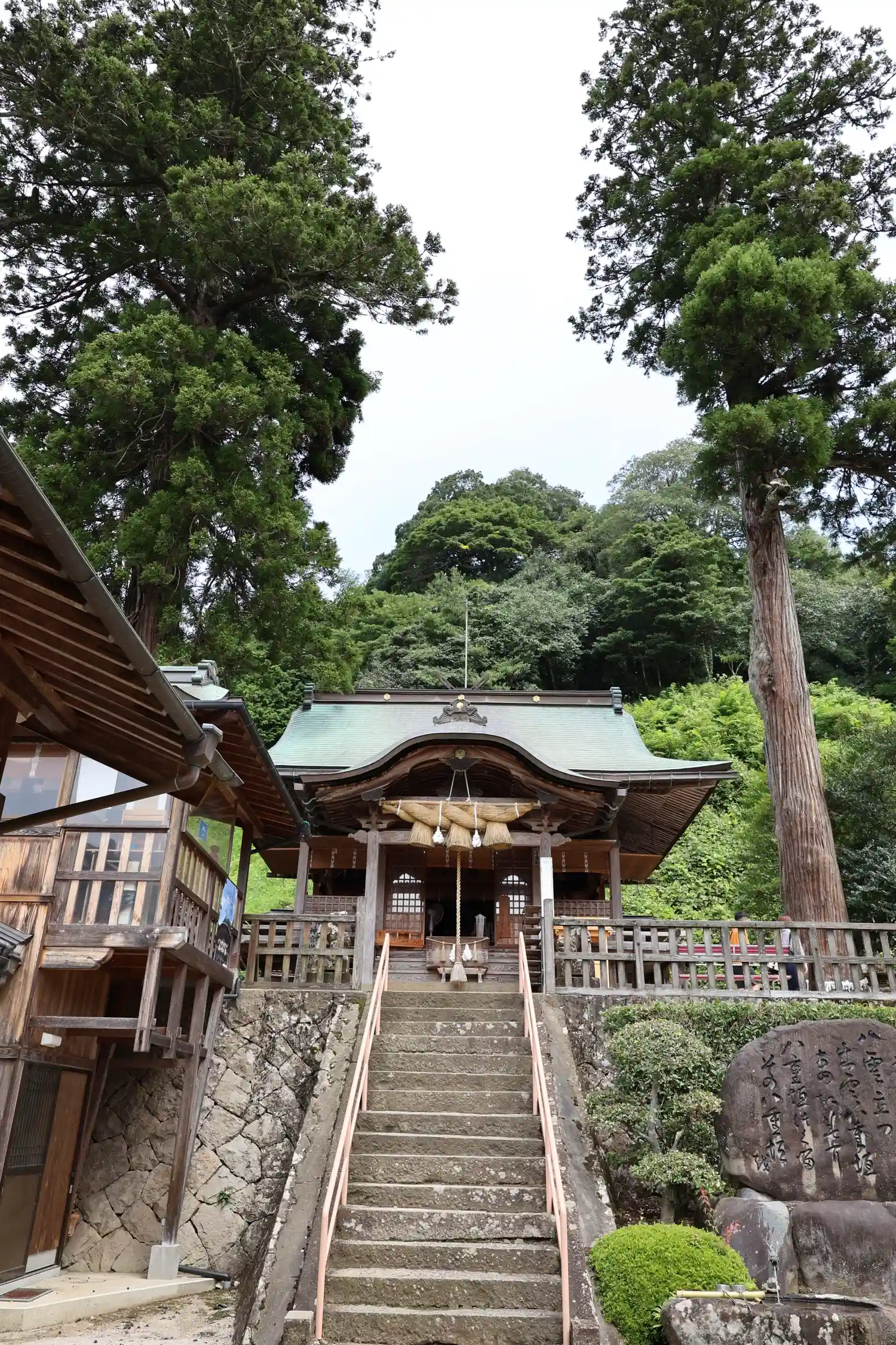 両脇に高い杉の木?があって お守りしているかのようです