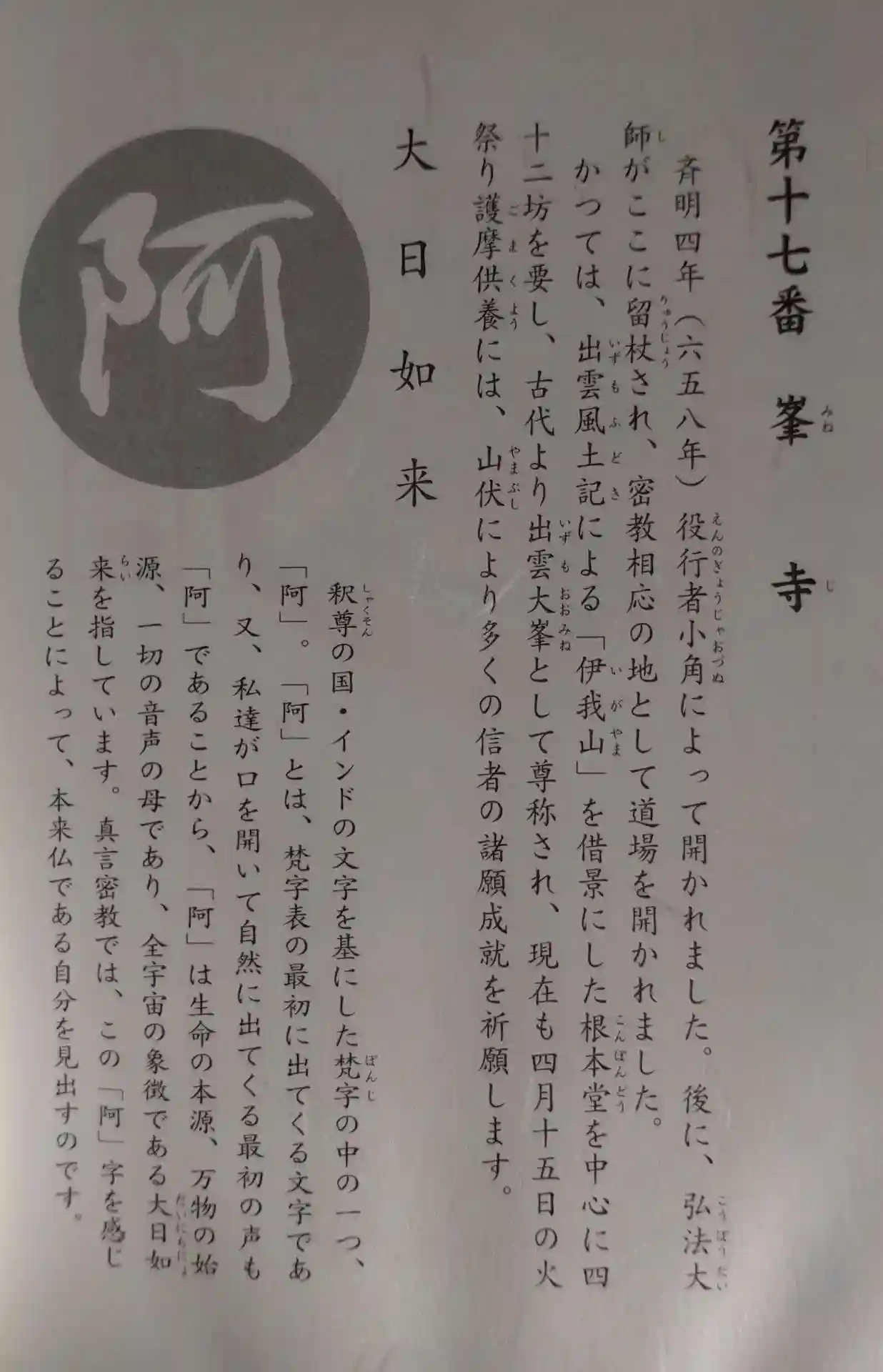 専用の巡拝帳に載っていた説明文です。