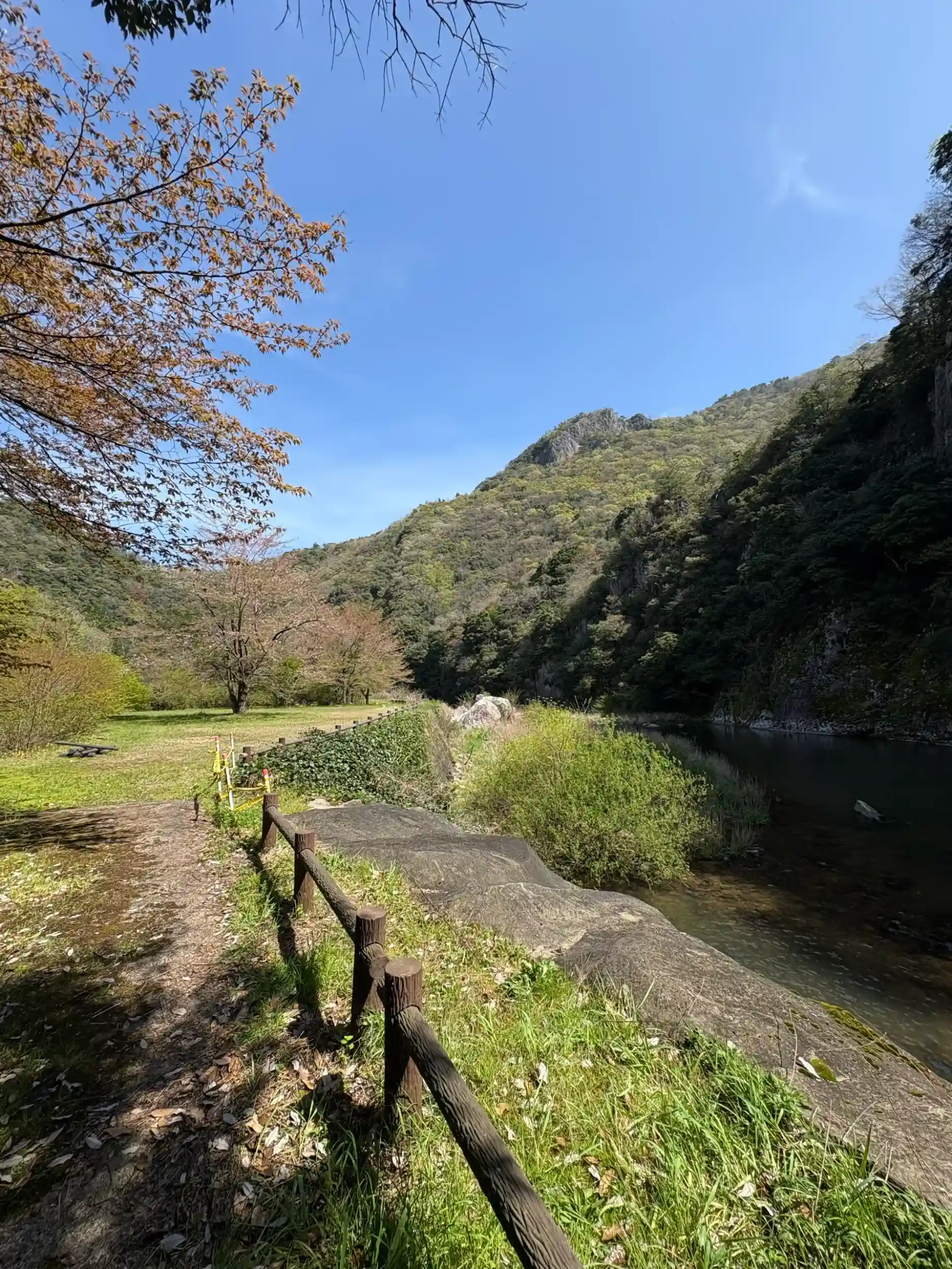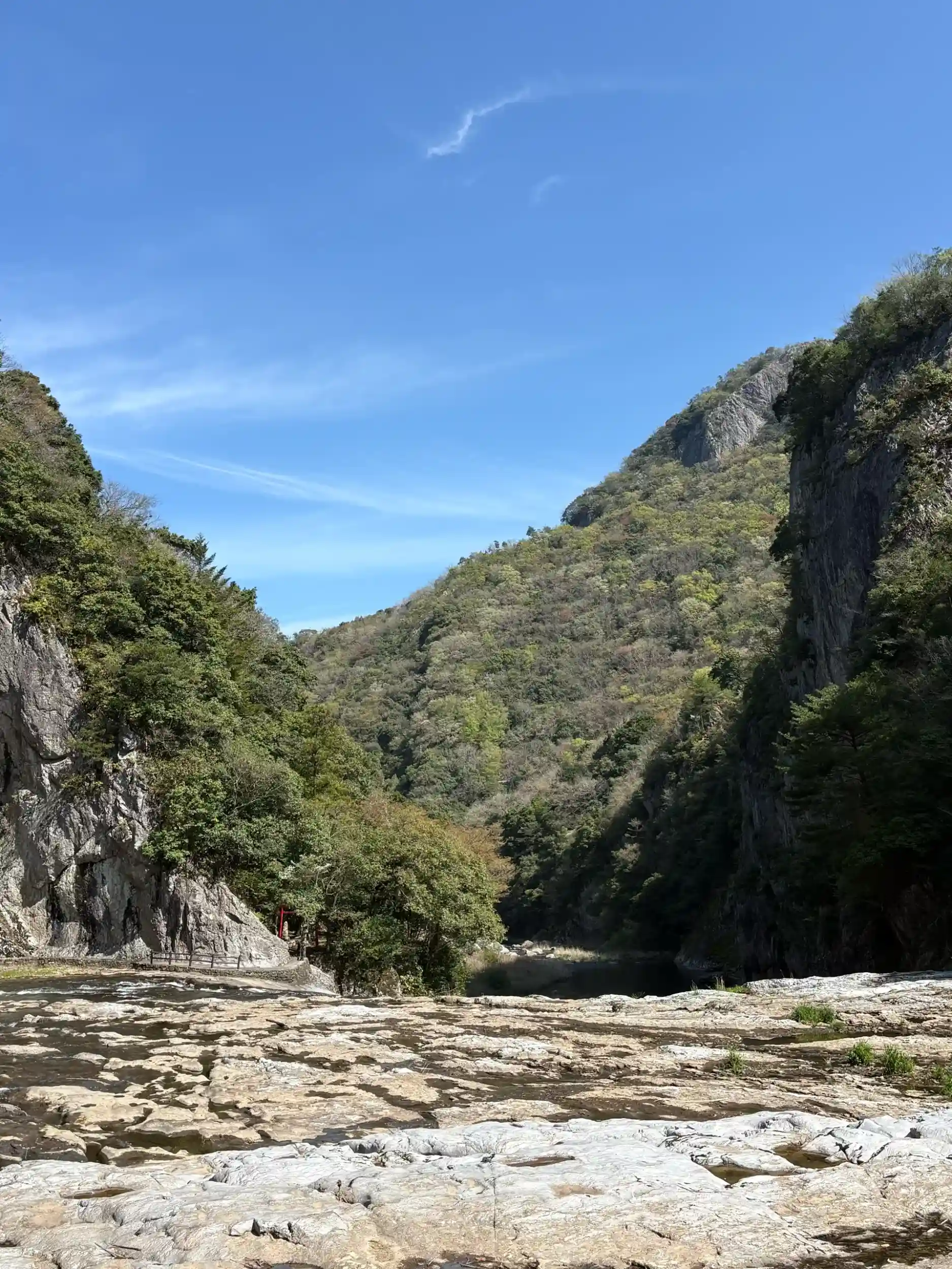 素敵でしょ😆実は公園には車で行ける道があるんですが面白くないので私はいつも千畳敷コースの遊歩道行きます。下りは楽なんですけど帰りはちょっと足にこたえます😅増水すると荒れ狂う川になるので怖くておりれません😱この日はぴょんぴょん水たまりを避け対岸に渡りました🐇