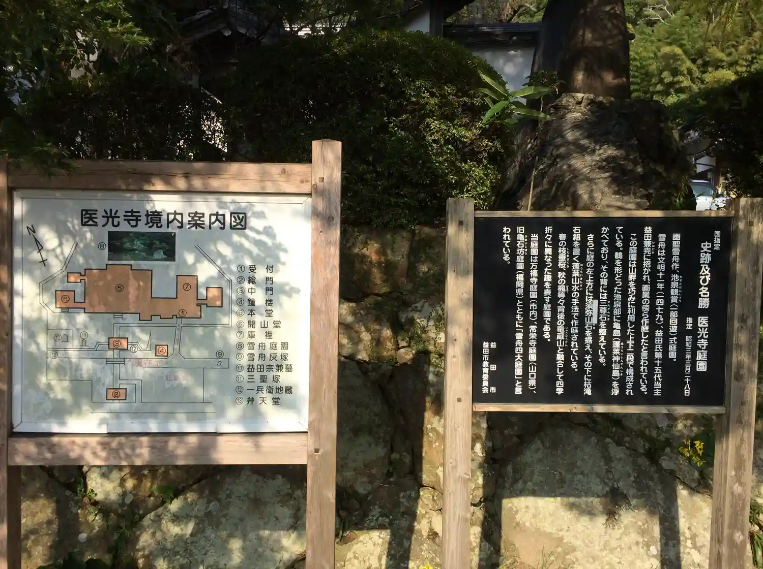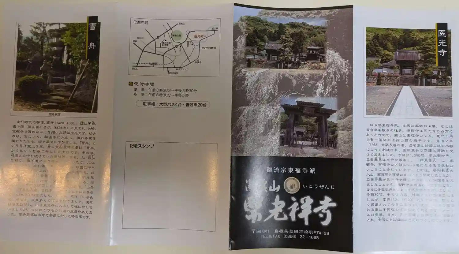 3社目はお寺です。ずっとお参りしたかった医光寺に行くことにしました。道路から入ってすぐの医光寺総門は島根県指定有形文化財で益田七尾城の大手門だったとの事ですが流石の迫力で,とても見応えがありました😃また,寺務所ではおばあちゃんに御朱印をいただきました🤗今日は時間が無くて見学できませんでしたが次は雪舟庭園もゆっくり見学したいです😆あっ雪舟庭園を見学した人限定で益田七尾城の御城印がいただけるそうですよ☺️