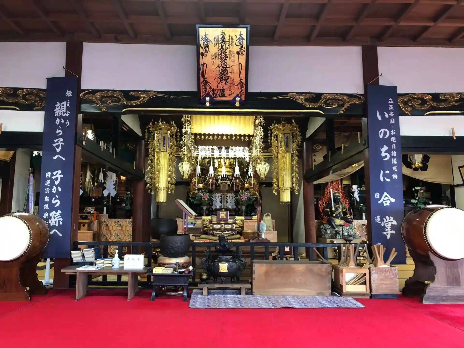 妙法寺の境内と本堂内の写真です。