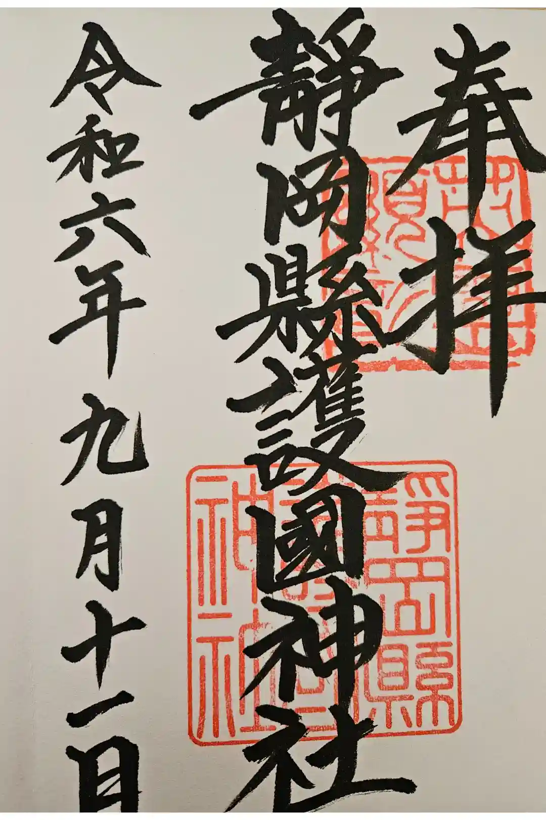 靜岡縣護國神社の御朱印・御朱印帳