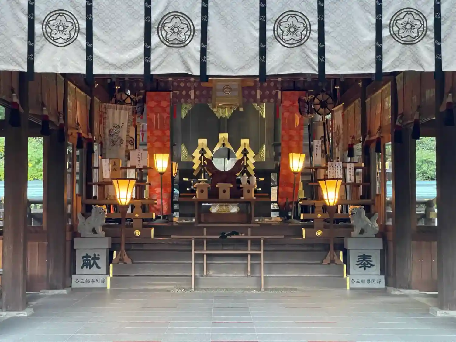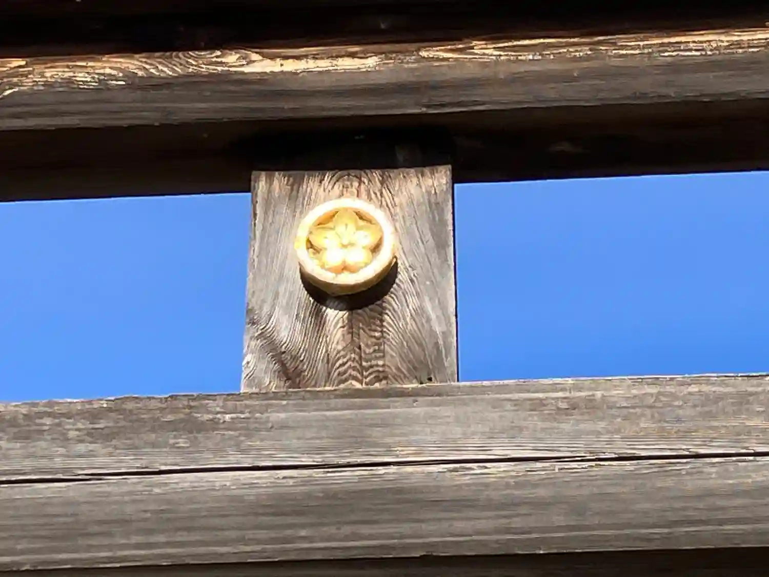 鳥居の御紋。菊に桜があしらわれています。