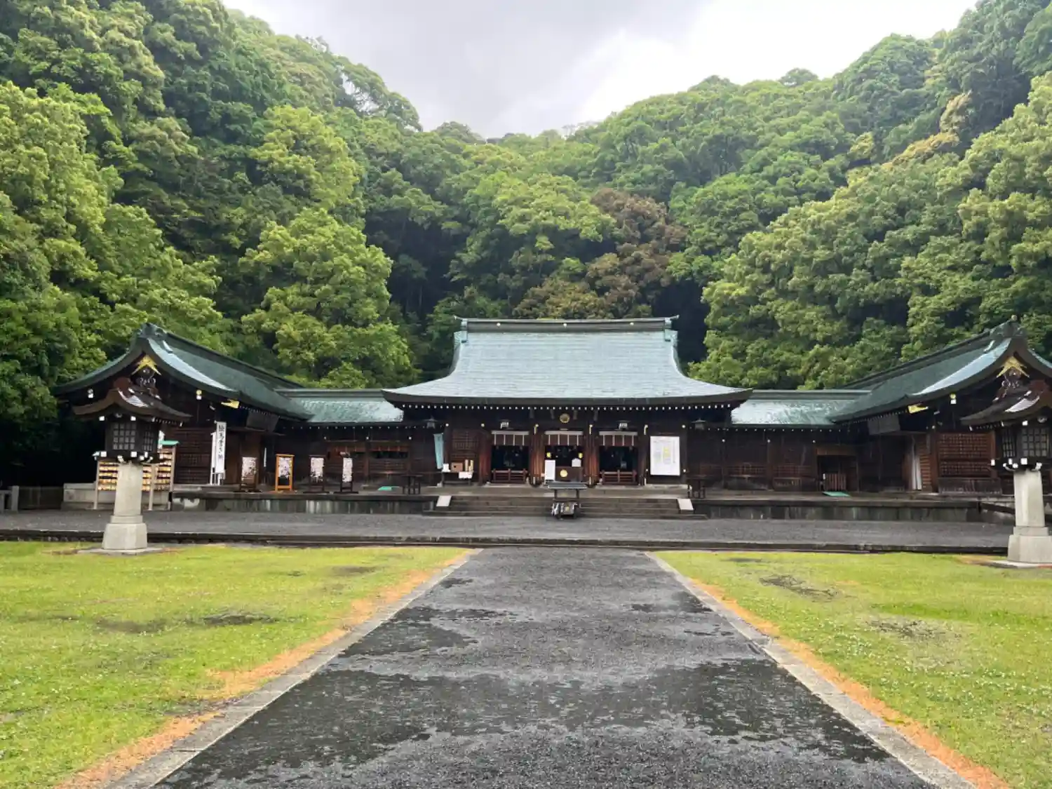 英霊に感謝します。立派な社殿。雨の日でもどっしりしている。