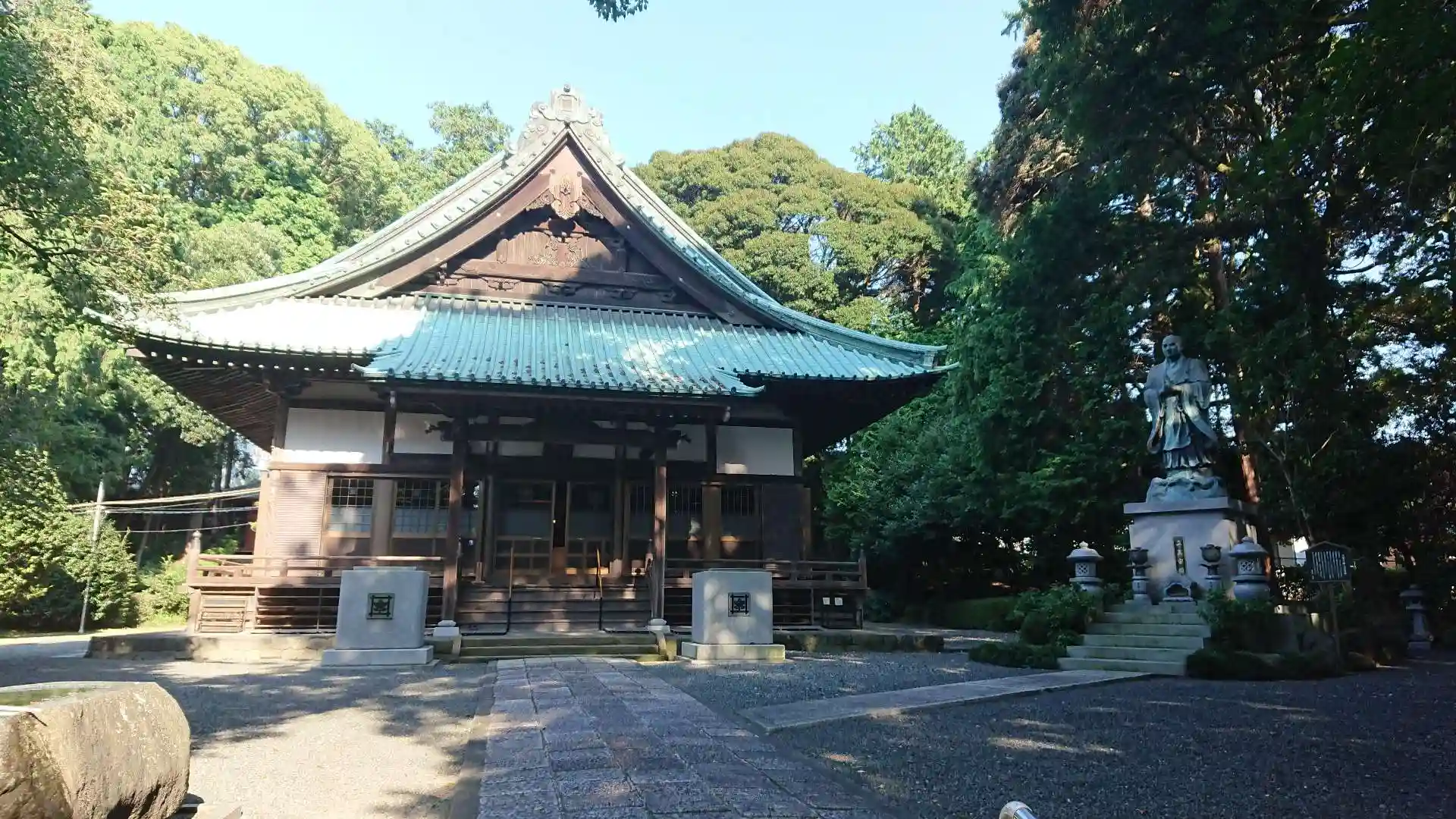 樹齢800年の大楠に迎えられ、山門を抜けると正面に本堂があります。