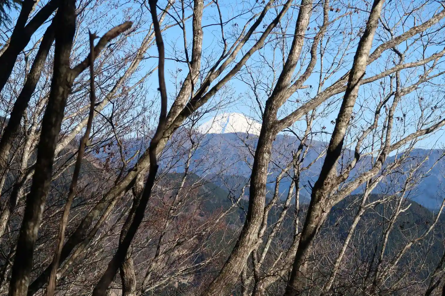 富士見峠からの富士山(木々が邪魔になって・・・)