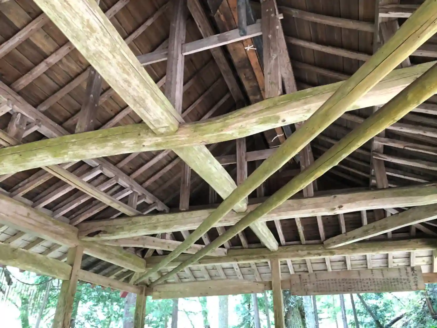 斜めに2本補強するかのように木材が組まれてますね。