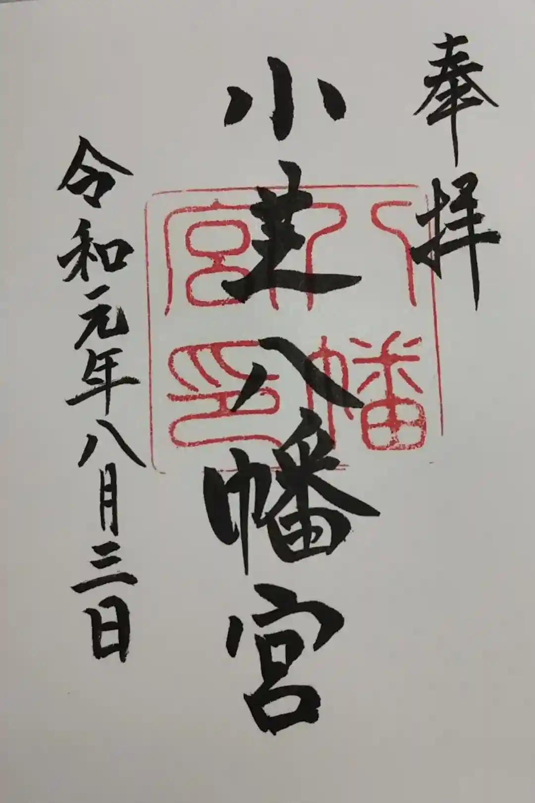 小芝八幡宮様にうかがって頂いた書き置きの御朱印になります。