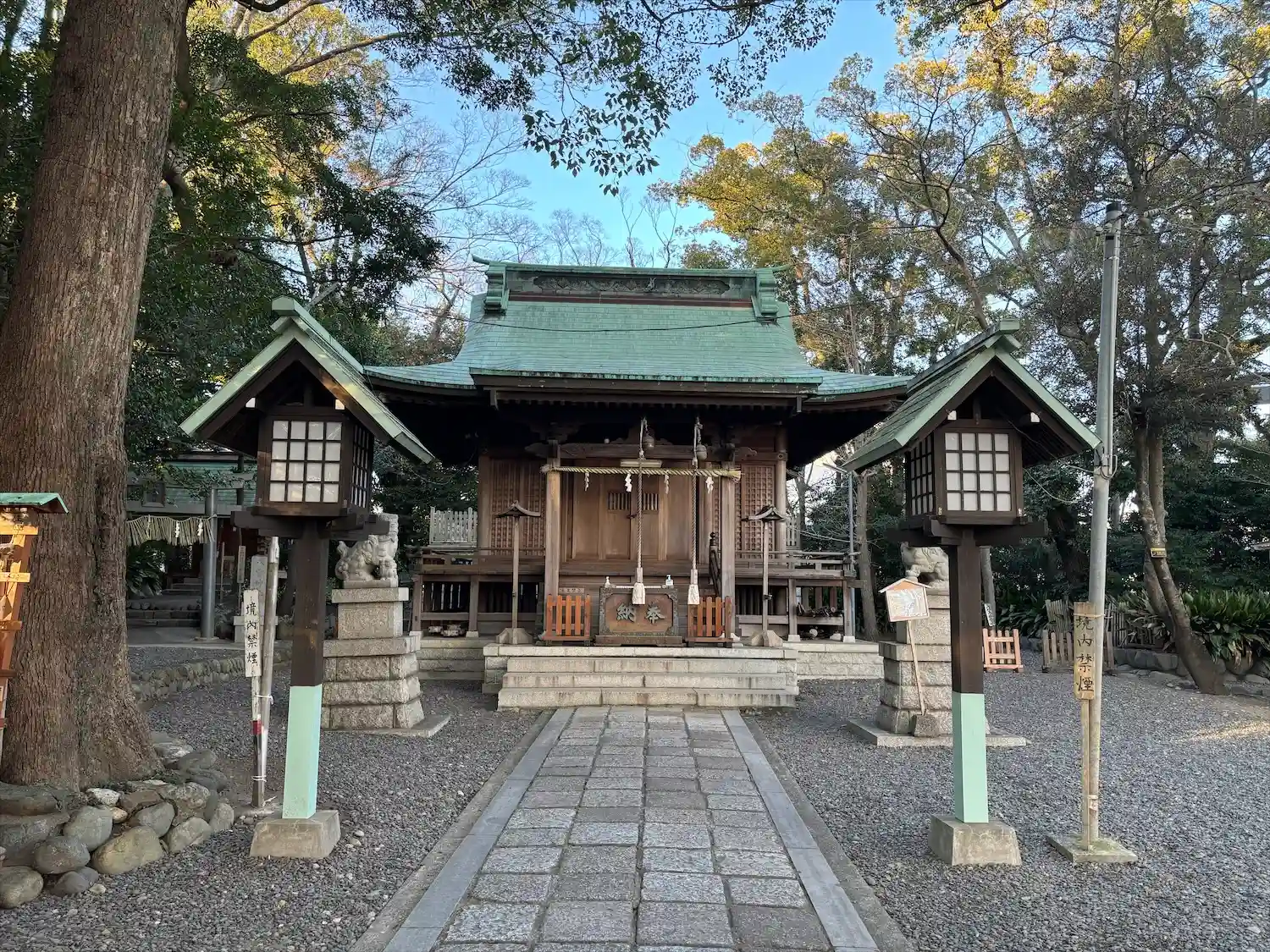 本殿主祭神は日本武尊・景行天皇・神武天皇の三柱、配祀神は事代主命・蛭児大神の二柱を祀っています。