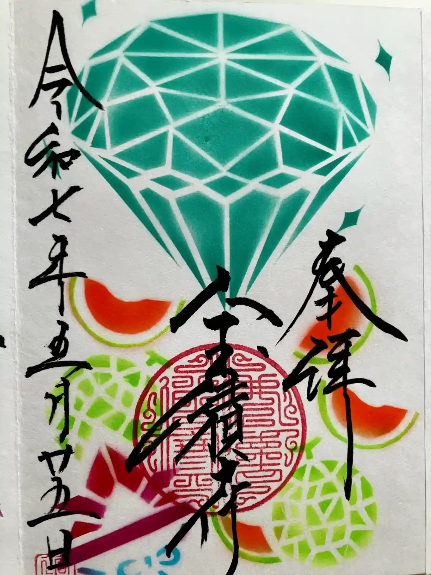 全ての御朱印にスワロフスキー・クリスタルを散りばめ、朱印に鮮やかな光を取り入れているのが特徴です。