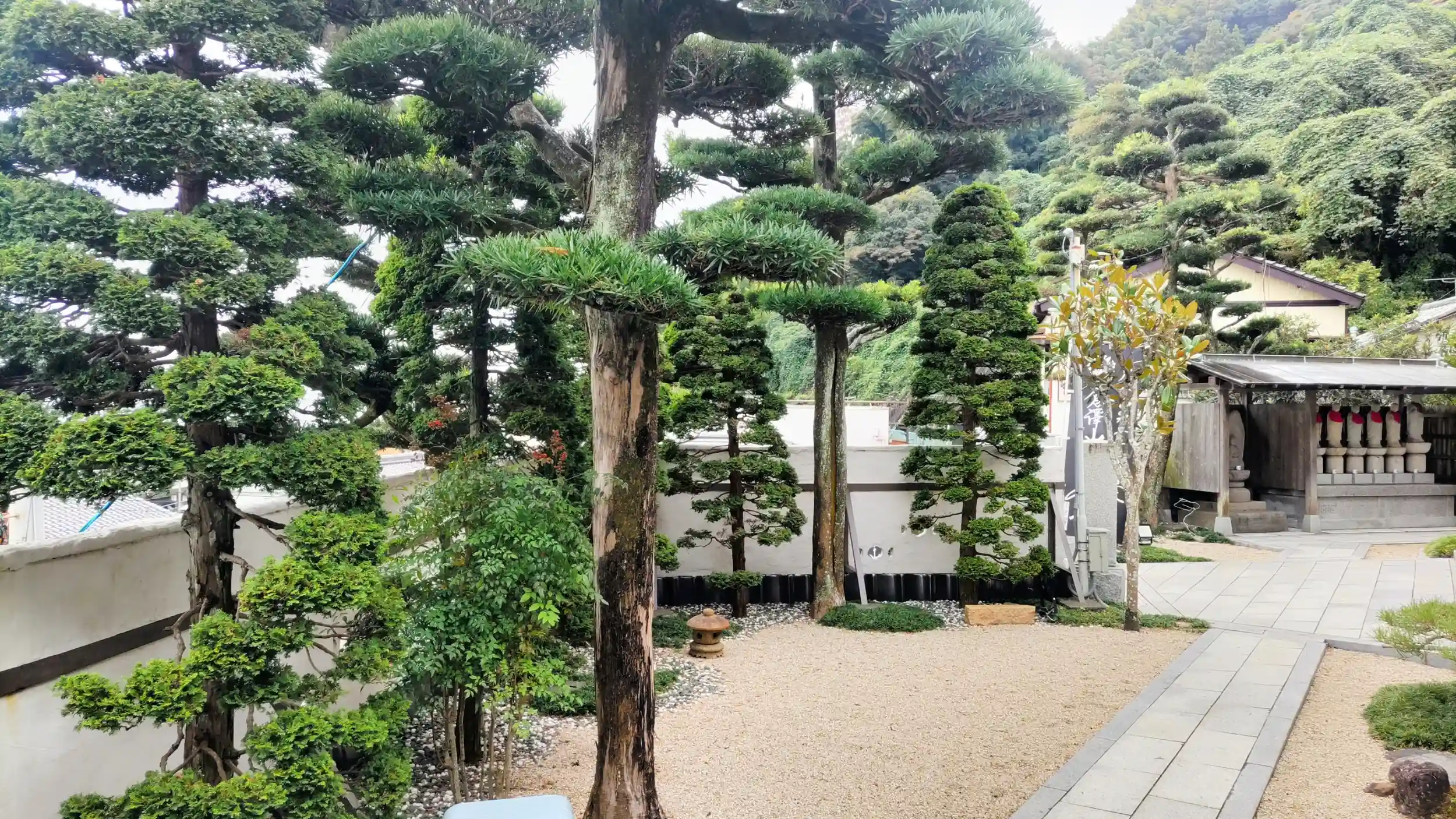 道を挟んでお寺の向かいおよび石段の左手に駐車場があります。