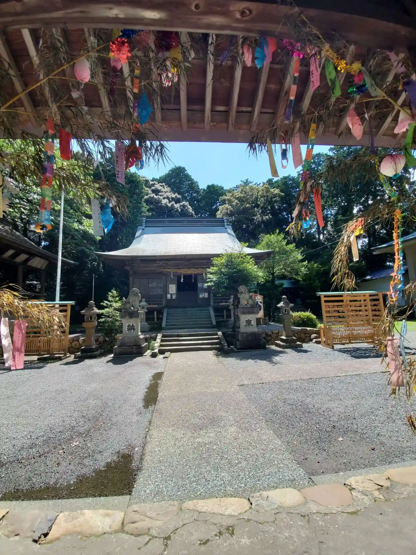 竹燈籠で拝殿を囲ってあり日本武尊のイラストの入った竹燈籠もありました。
