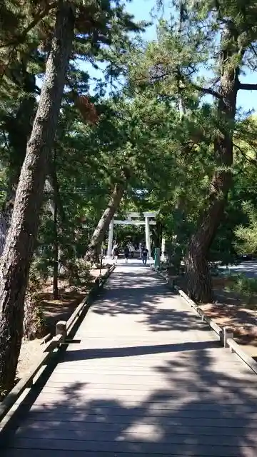 世界文化遺産になった、三保の松原の範囲に含まれる神社です。三保の松原から続く羽衣の松と言われる参道(別名「神の道」)を抜けると鳥居があります。