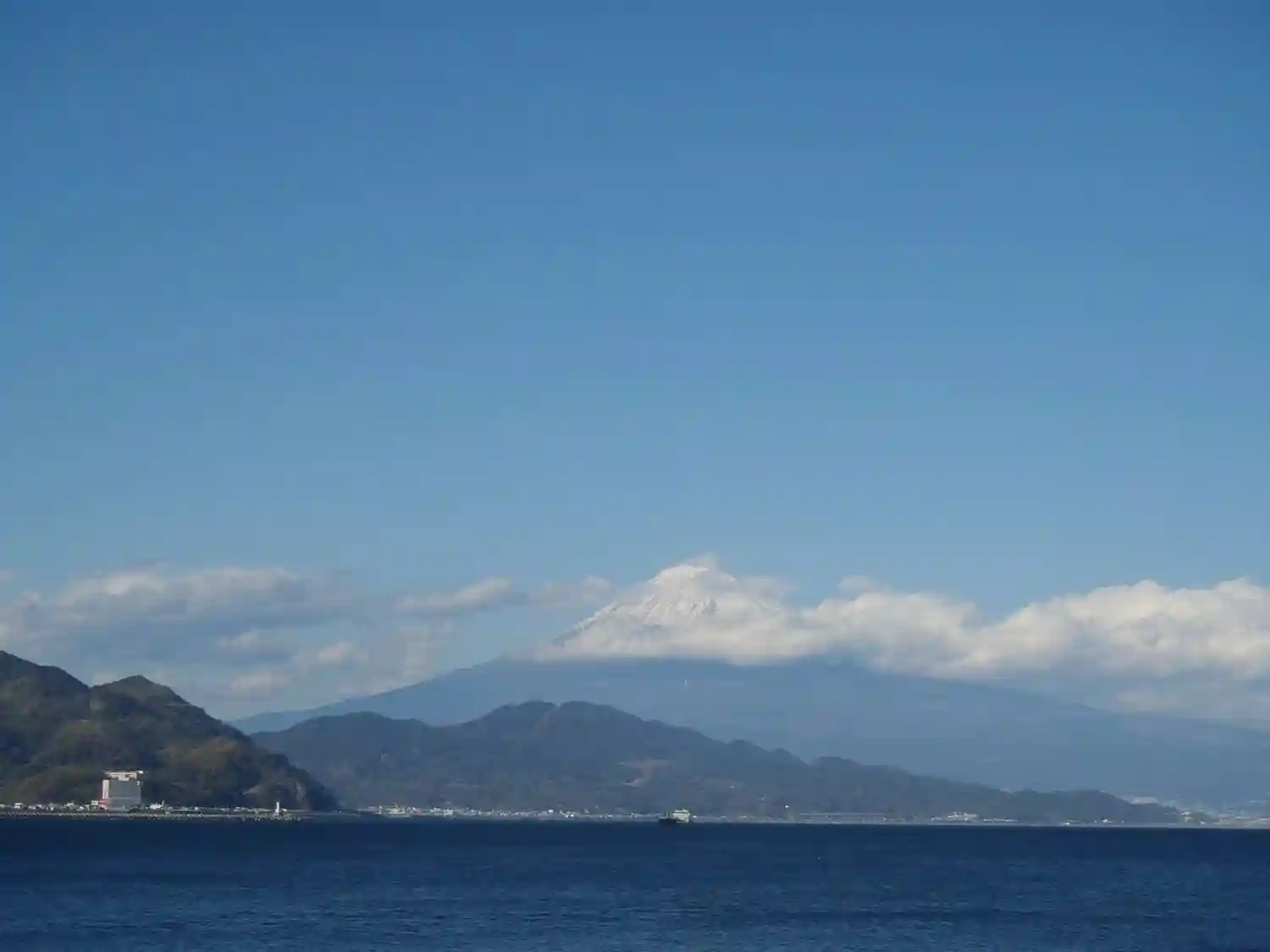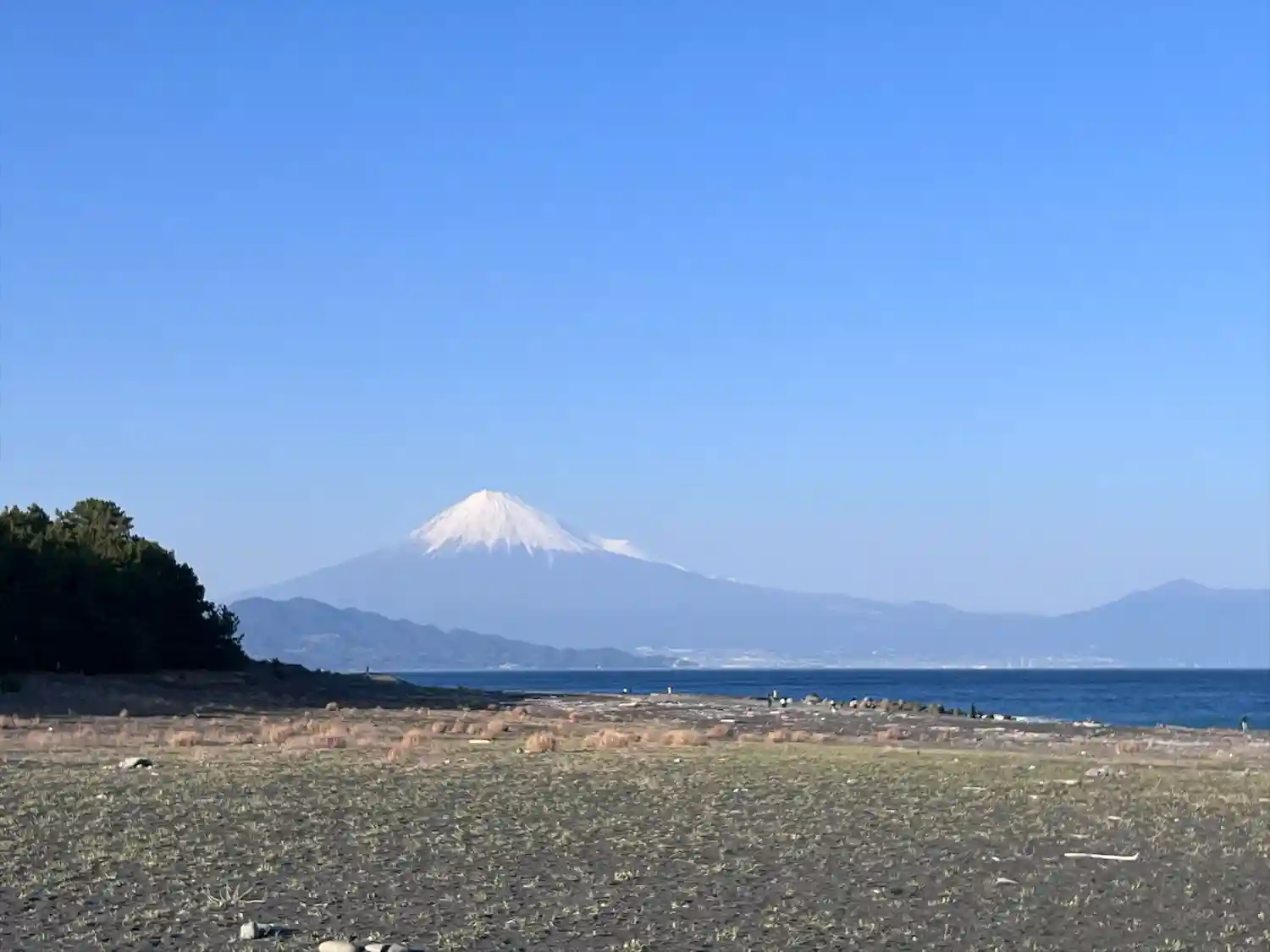 海岸に出ると見事な富士山が…