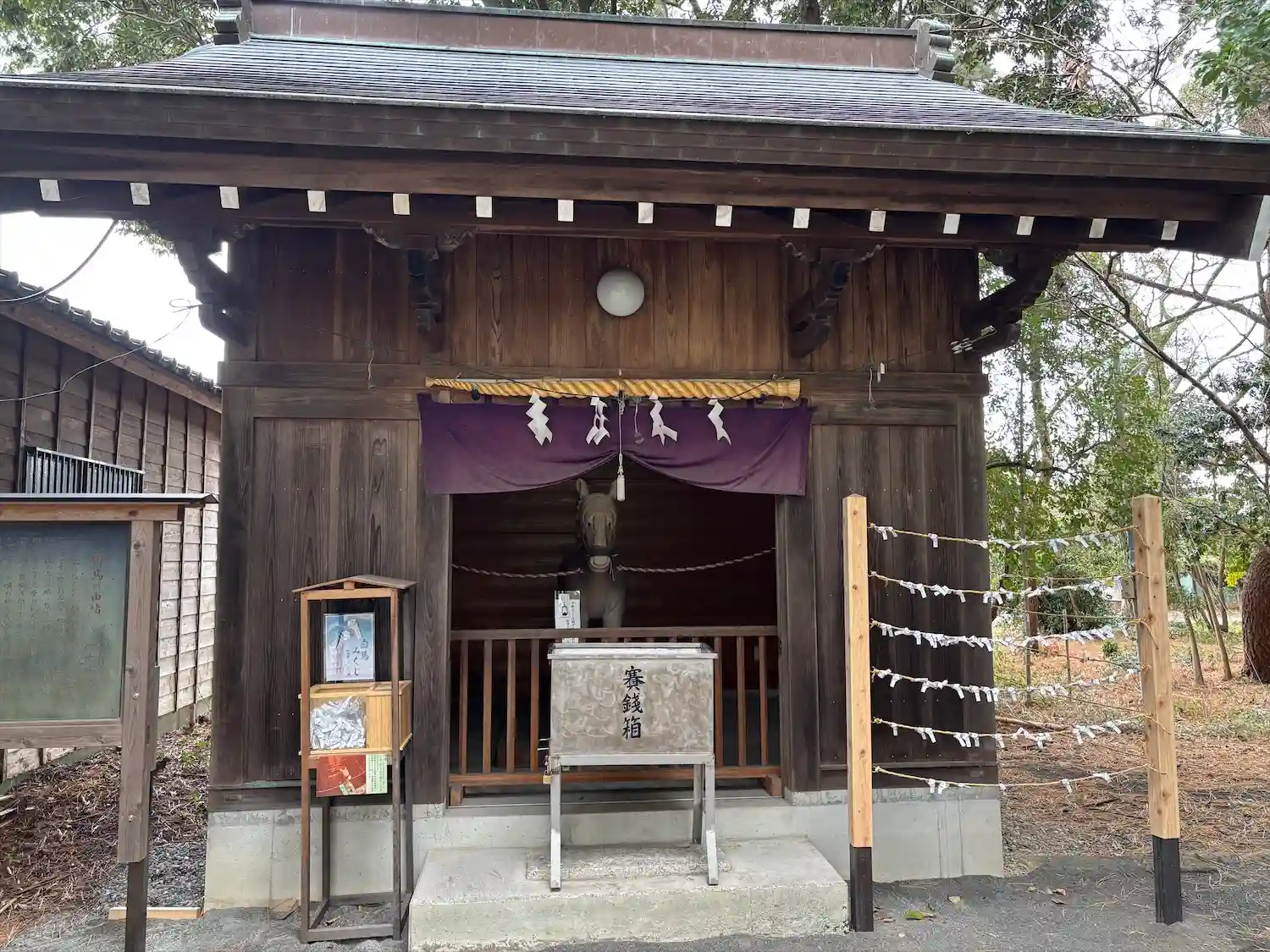 1773(安永2)年の駿府大火で静岡淺間神社の神馬2頭が御穂神社へ逃れ、1頭は元に戻り、その残った1頭という伝説があるそう。