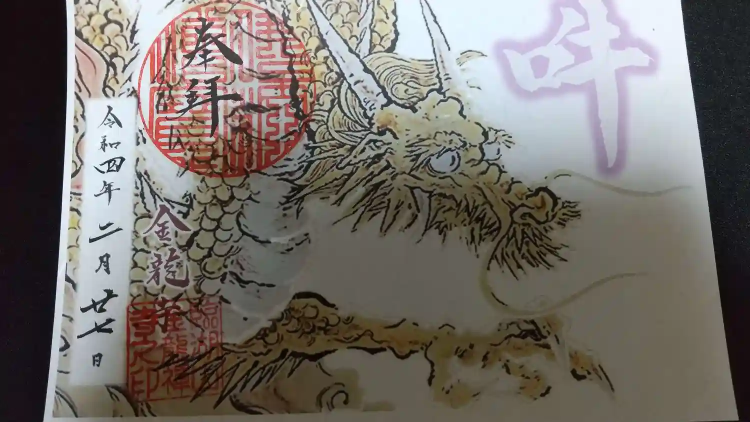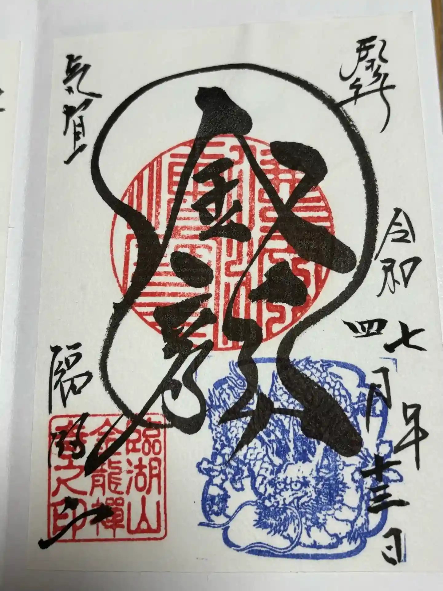 御住職が不在の為、書置き御朱印でしたがとても素敵な御朱印です。天井に描かれた龍の絵は、迫力があり寝…