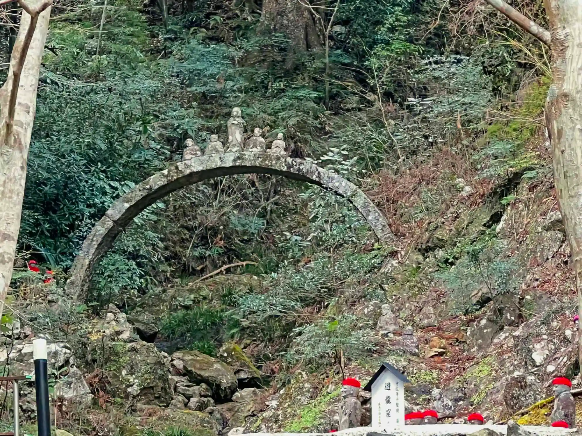 五百羅漢の奥には、宝歴年中(1751年~1764年)に三河の石匠によって造られた<石橋>。橋の上の羅漢の数が時により人により異なることがあるらしい。