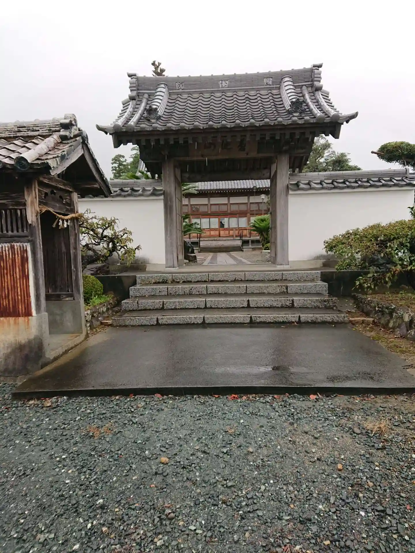 浜松市浜北区の陽泰院です。本堂に雨なので玄関からお入り下さいの札。玄関にはお出掛け中の札。参拝だけして帰ろうと、玄関なのでチャイムを鳴らしたら、奥から返事が! 札を下げるのを忘れてたとのこと。参拝して御朱印を頂きました。新作の二番目?二枚目です。