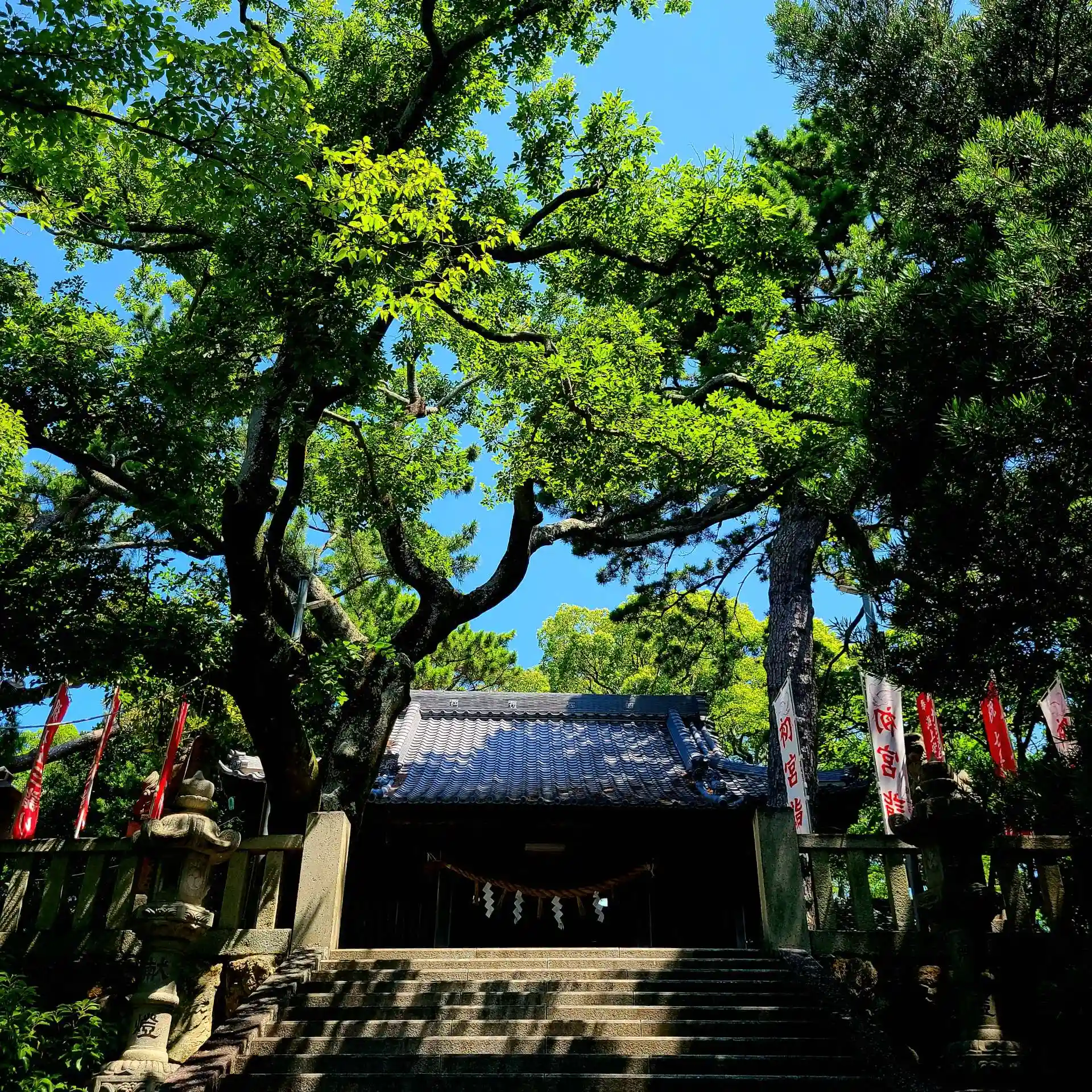 参拝に上がると、海チカの小高い丘の上の境内に清々しい風が通り抜けます。