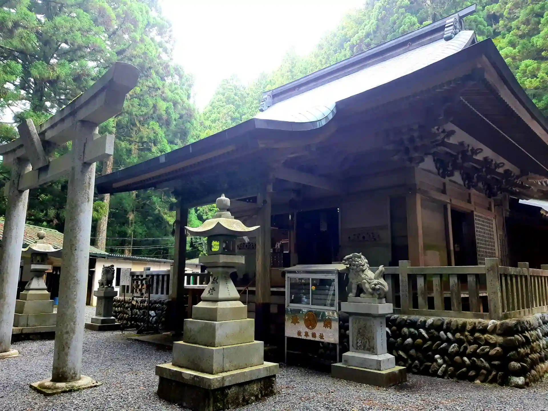 杉の巨木が厳かにそびえ立っています。境内を