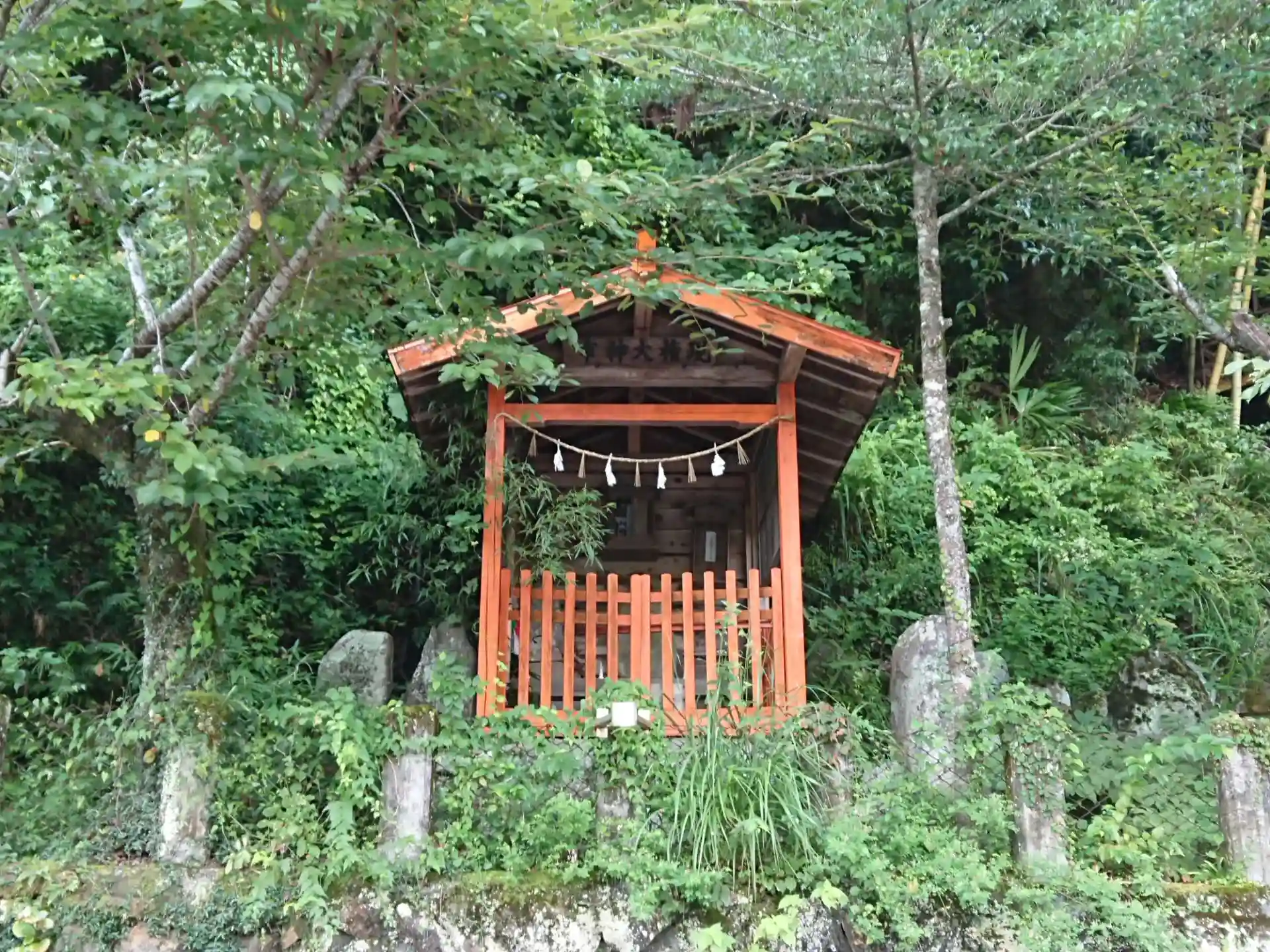 土手の途中に祠がありました。