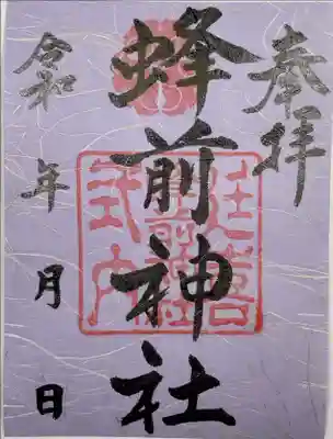 蜂前神社の御朱印・御朱印帳