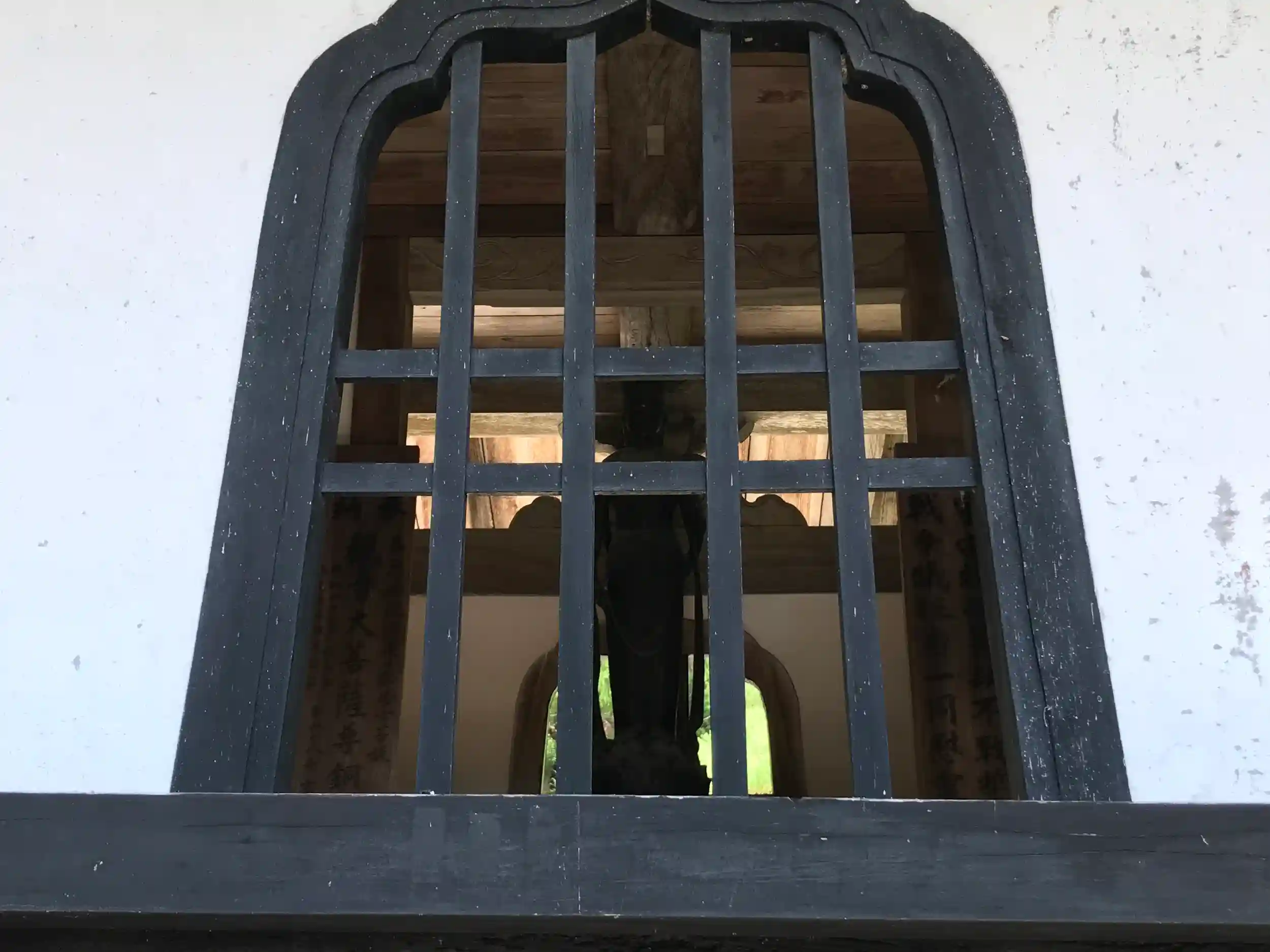 堂内に残された釈迦牟尼佛は1729年の制作。体には黒い落書きの跡が残っている。明治の廃仏毀釈の際近所の子供達が大仏に登り金箔を擦った跡だという。