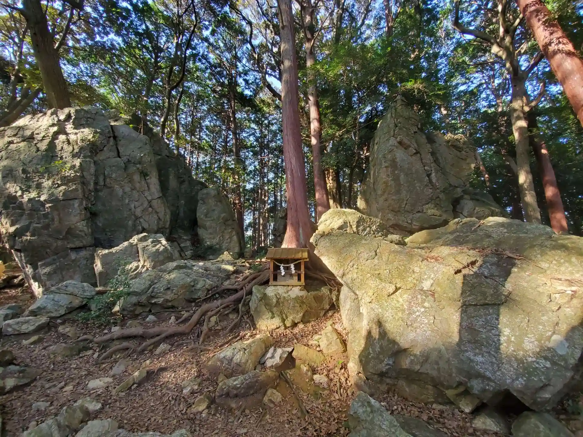 ムササビの住む森があります。拝殿裏手にある天白磐座遺跡は天からのパワーをいただきました。