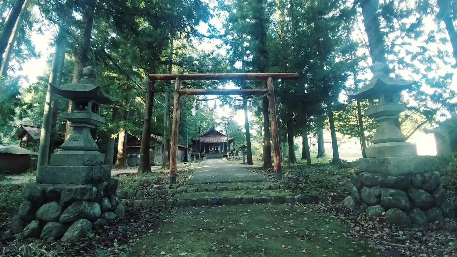 境内の東側に別神社があるので行ってみる。まず南側の<鳥居>。素朴な木製鳥居。