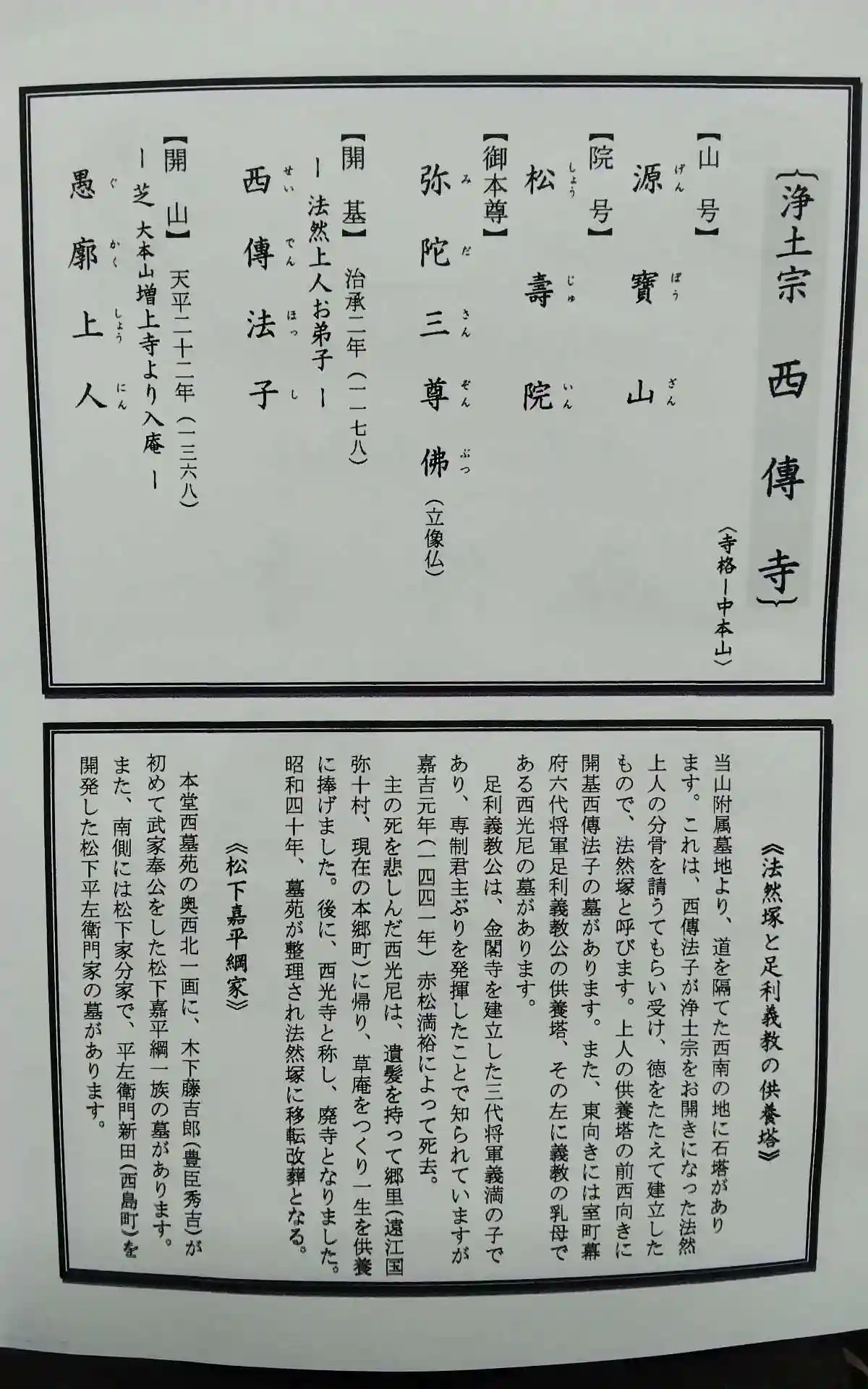 西伝寺様の説明書きになります。